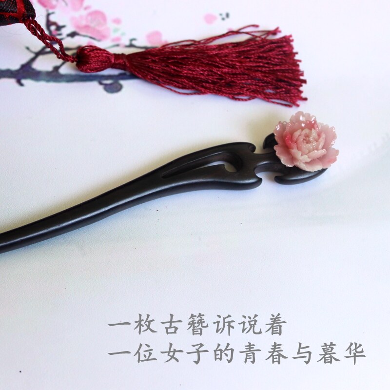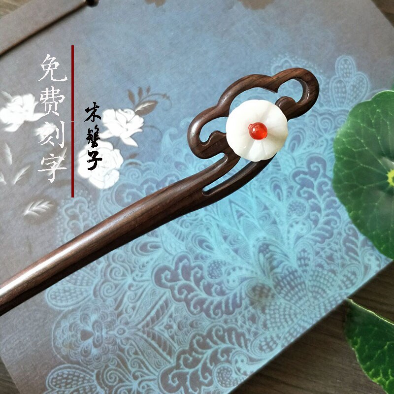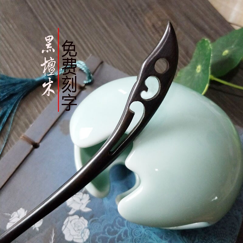 Китайская шпилька ручной работы, ханьфу, аксессуар, ретро заколка для волос из черного дерева Эбен из сандалового дерева