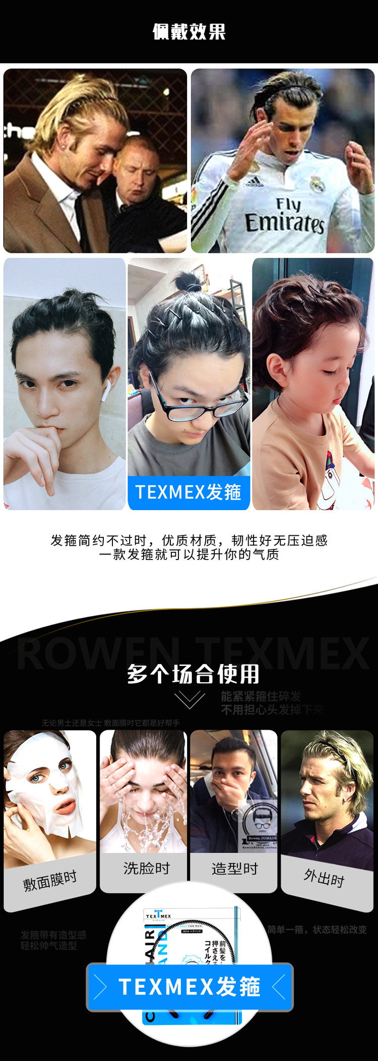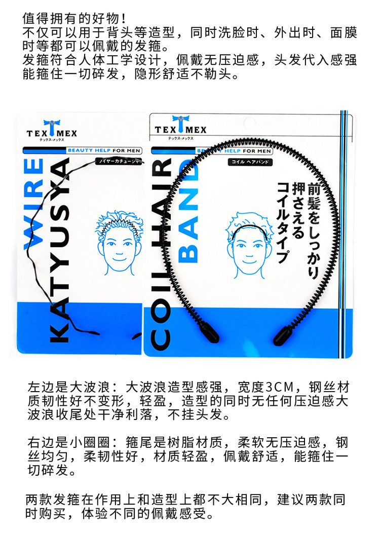 Японский текс мужской обруч для волос дома большая спина засоры волосы зажигают мужская карточка для волос с большими волнами круги волос