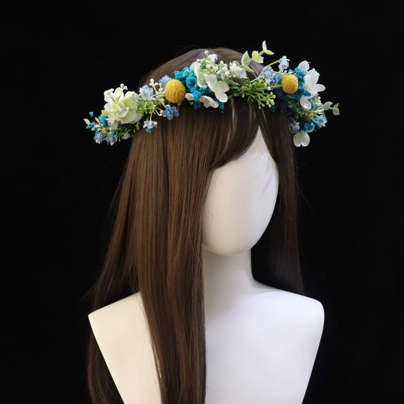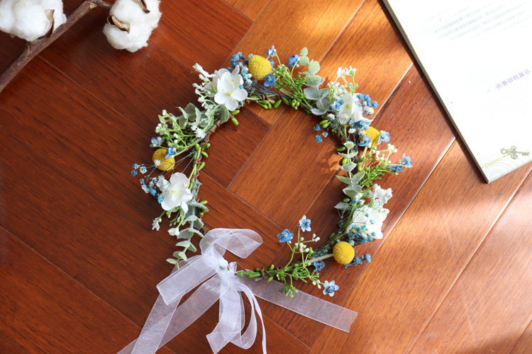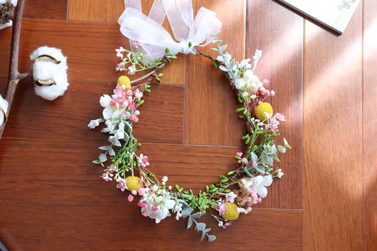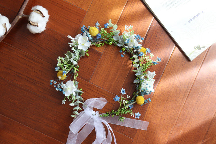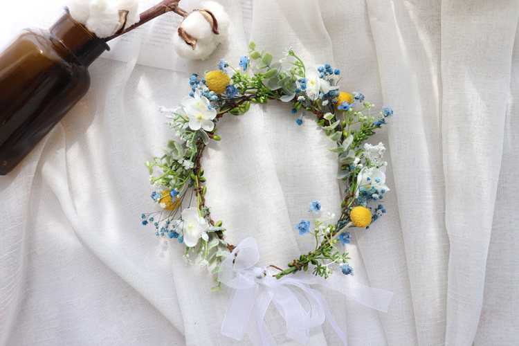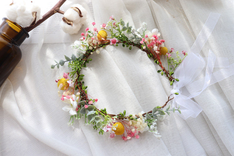 Цветочное кольцо составляет около 50 см по периметру, а лента регулируется сзади.