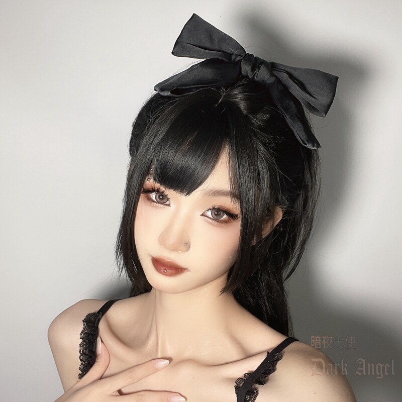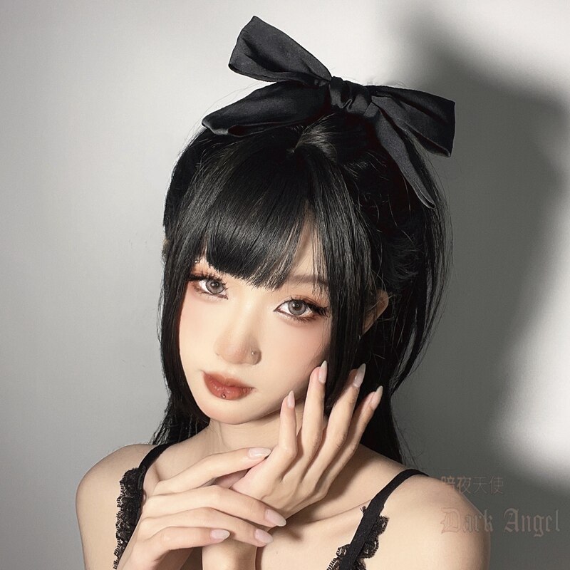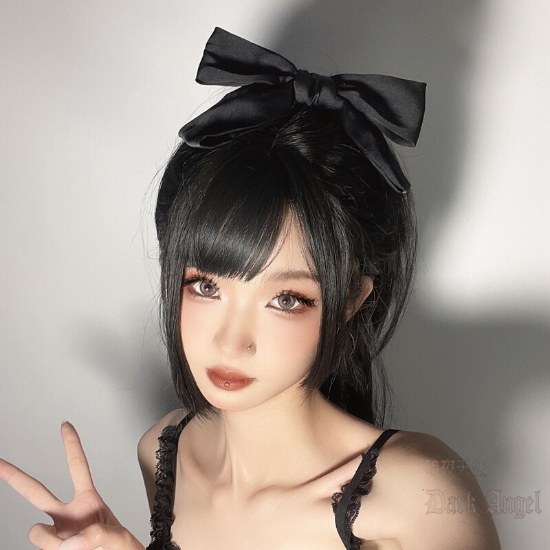 Большая заколка для волос с бантиком, студенческая юбка в складку, черный японский аксессуар для волос, хвостик