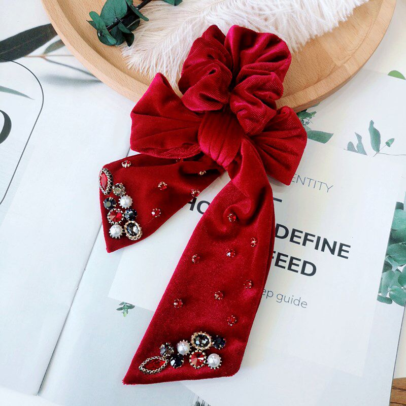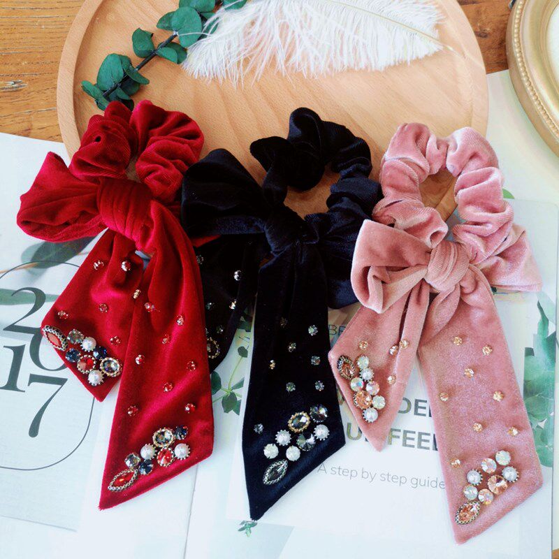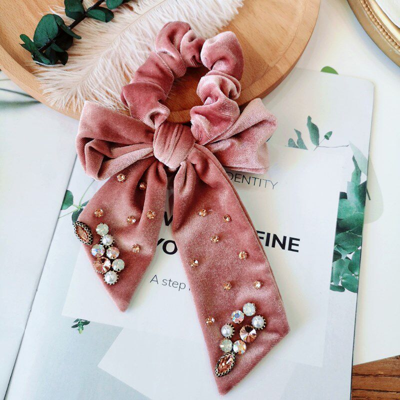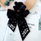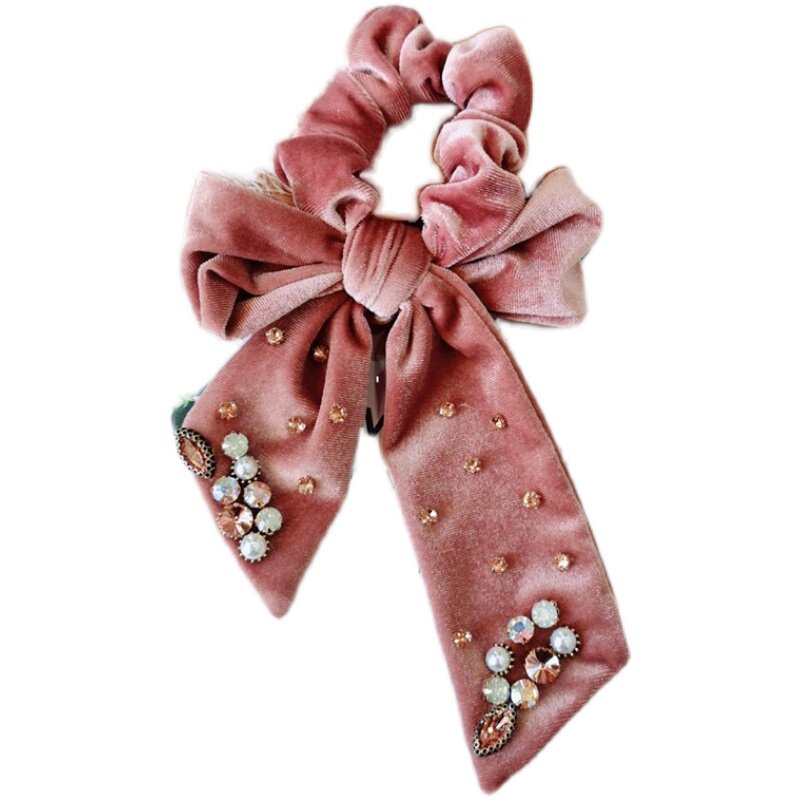 Ретро резинка для волос, аксессуар для волос с бантиком из жемчуга, в корейском стиле, французский стиль