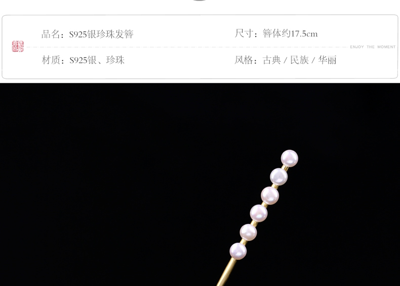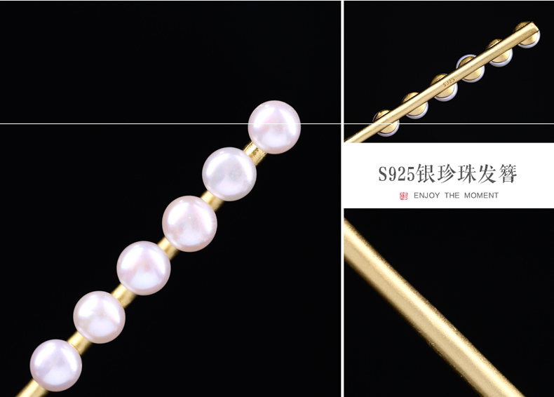 - Золотая инкрустация камня из жемчуга, китайская шпилька, серебро 925 пробы