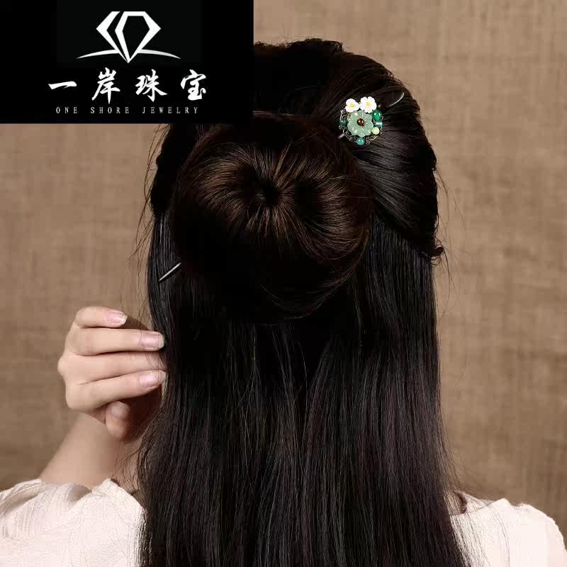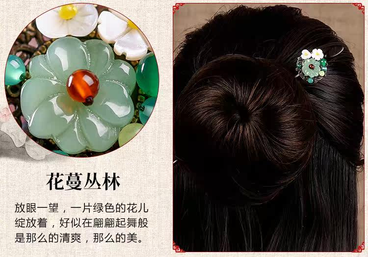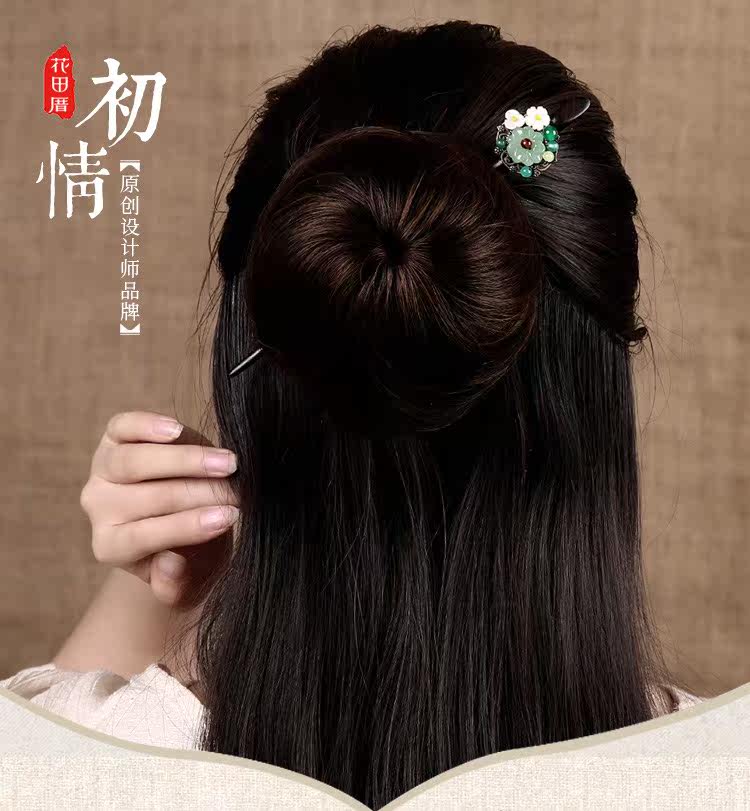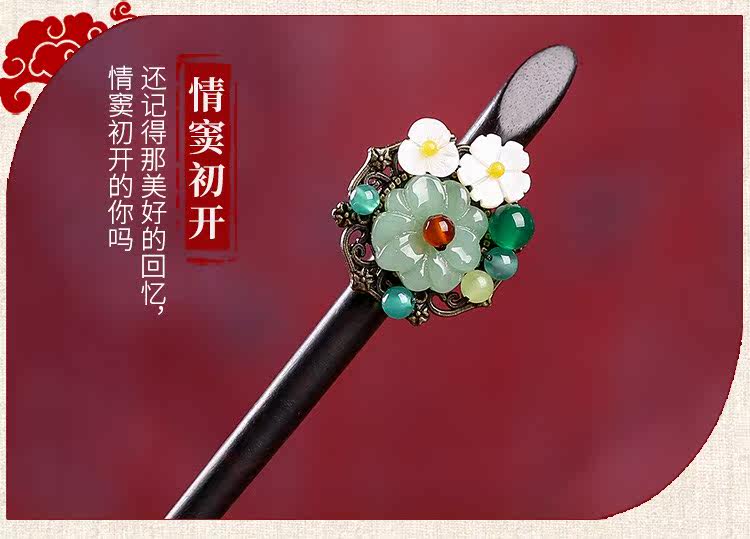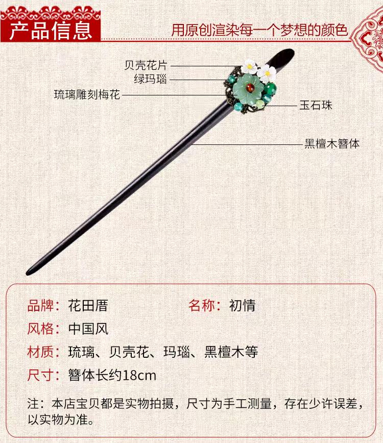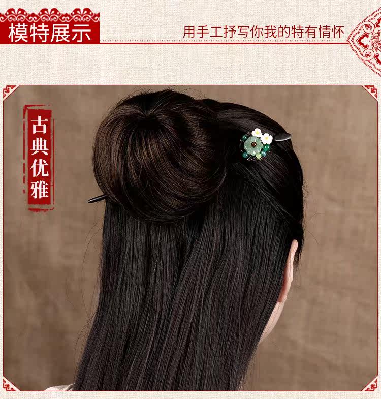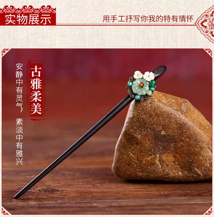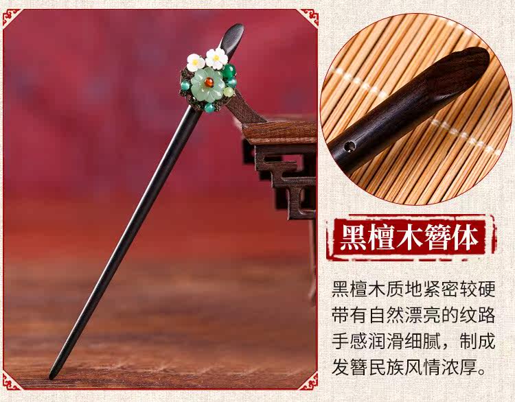 紫尚轩 Классическая агатовая китайская шпилька из черного дерева Эбен из сандалового дерева с кисточками