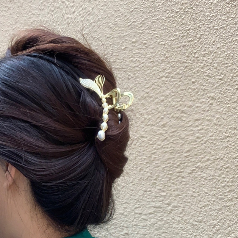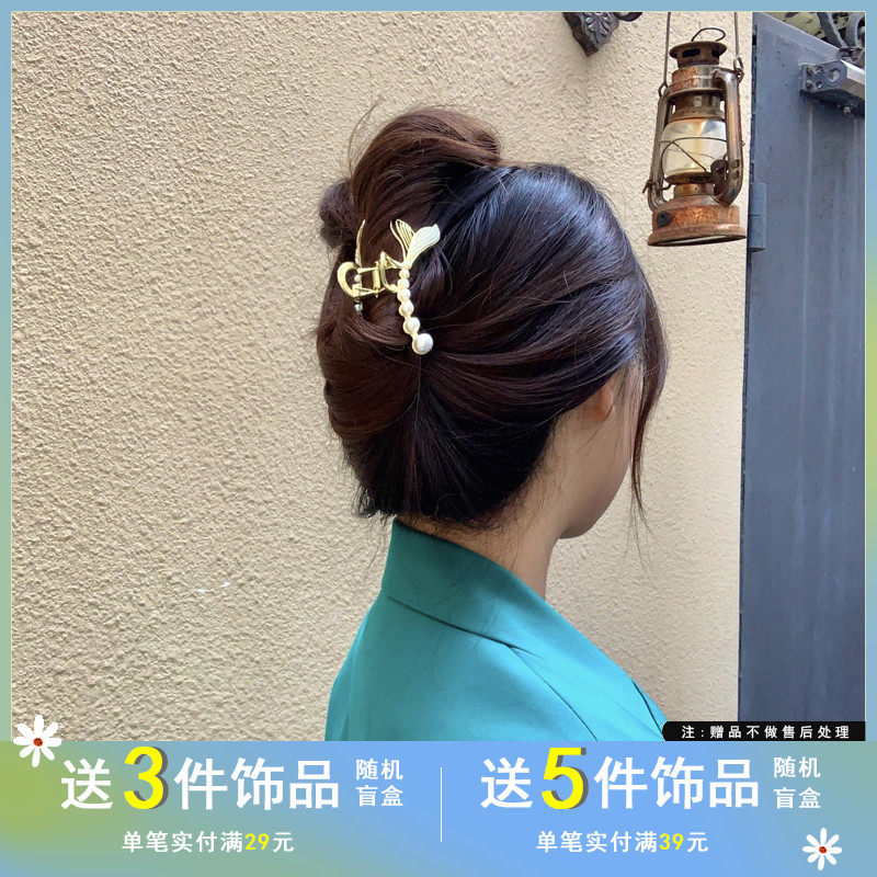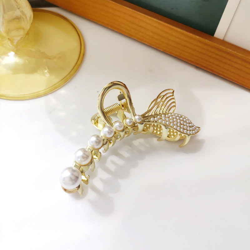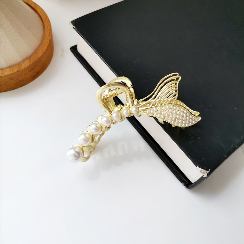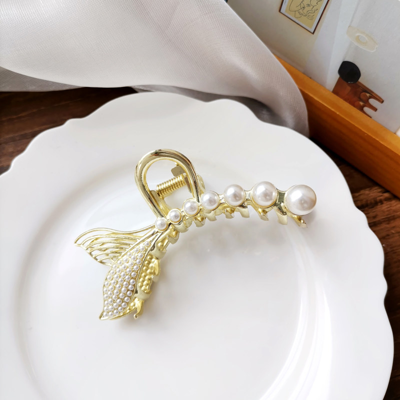 Брендовая элегантная заколка-крабик из жемчуга, акула, аксессуар для волос, Южная Корея