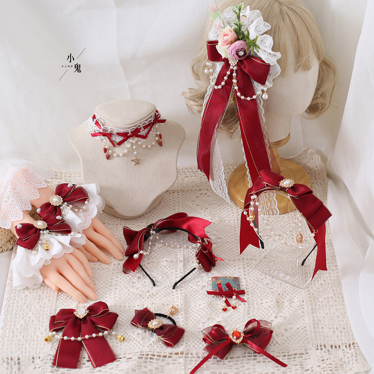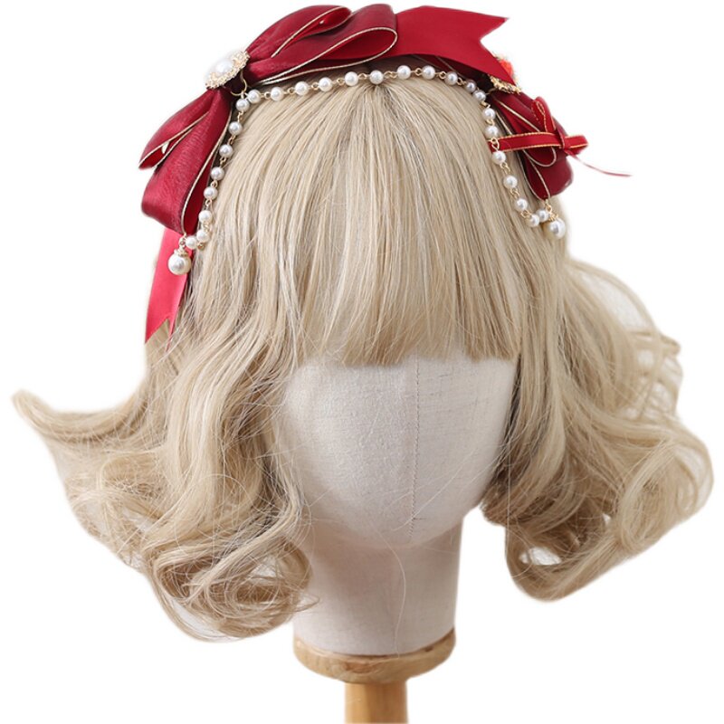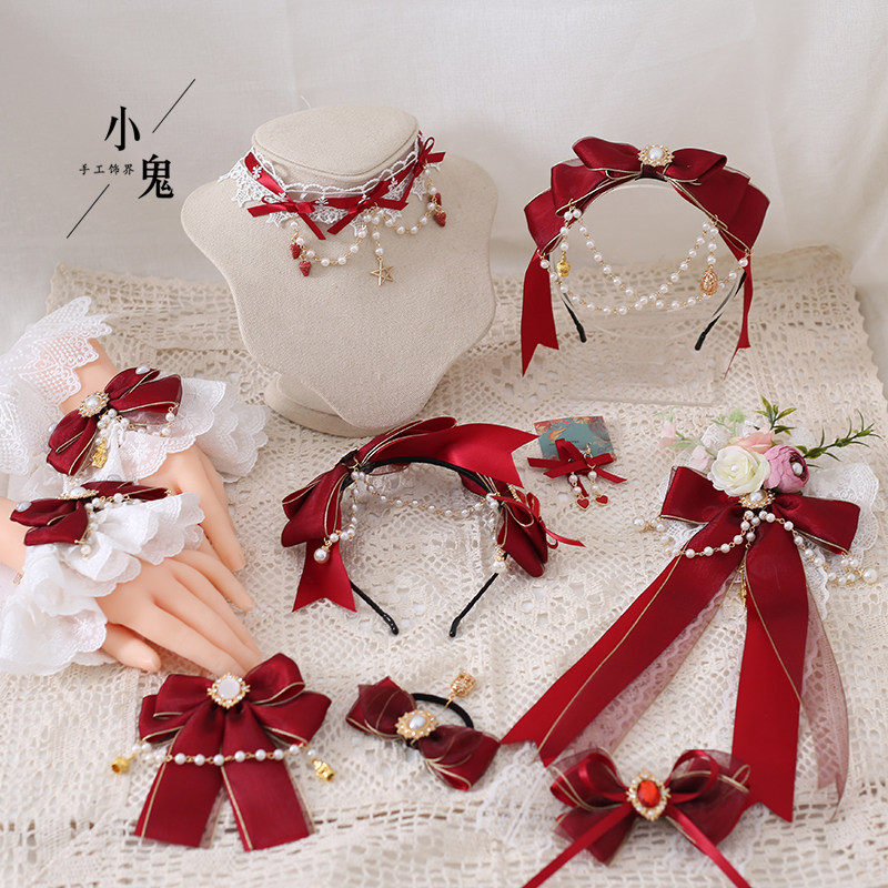 Красный аксессуар для волос, повязка на голову с бантиком, оригинальная милая клубника, ободок, стиль Лолита, DIY, кружевное платье