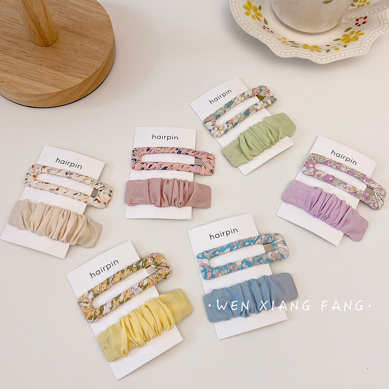 Свежая ткань, милая универсальная заколка для волос, челка, шпильки для волос, аксессуар для волос, 2 шт, цветочный принт, японские и корейские