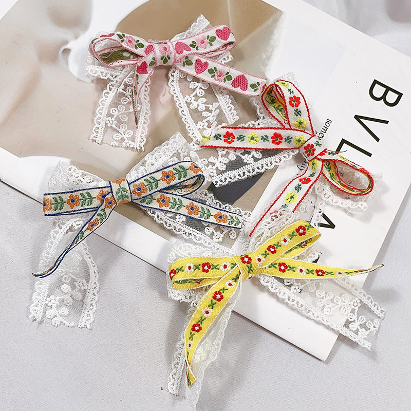 Детская заколка для волос с бантиком, брендовая челка, шпильки для волос, аксессуар для волос, ювелирное украшение, цветочный принт