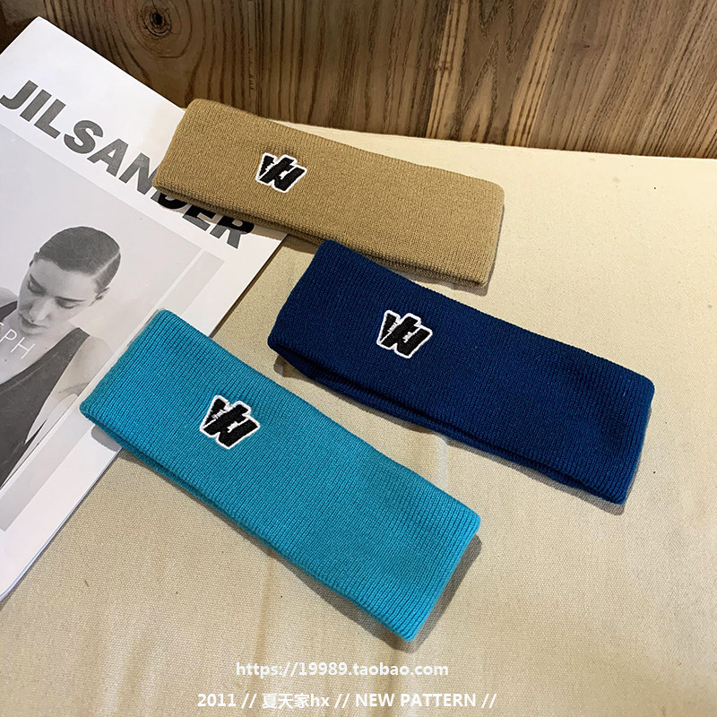 Синяя трикотажная повязка на голову для выхода на улицу, трикотажный ободок