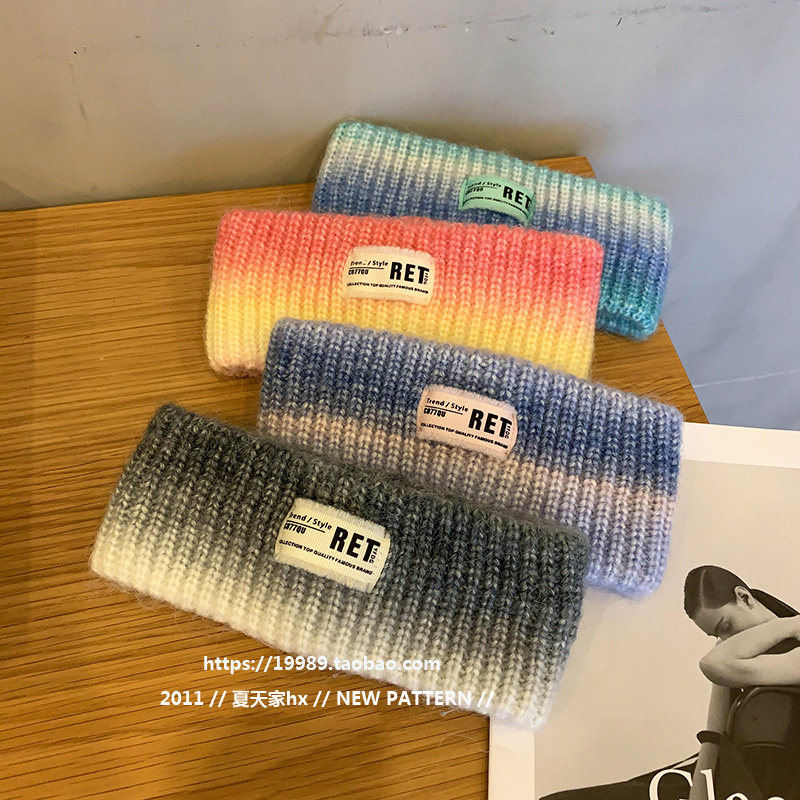 Японский пластырь с буквами, трикотажная повязка на голову, ободок для умывания, градиент, популярно в интернете