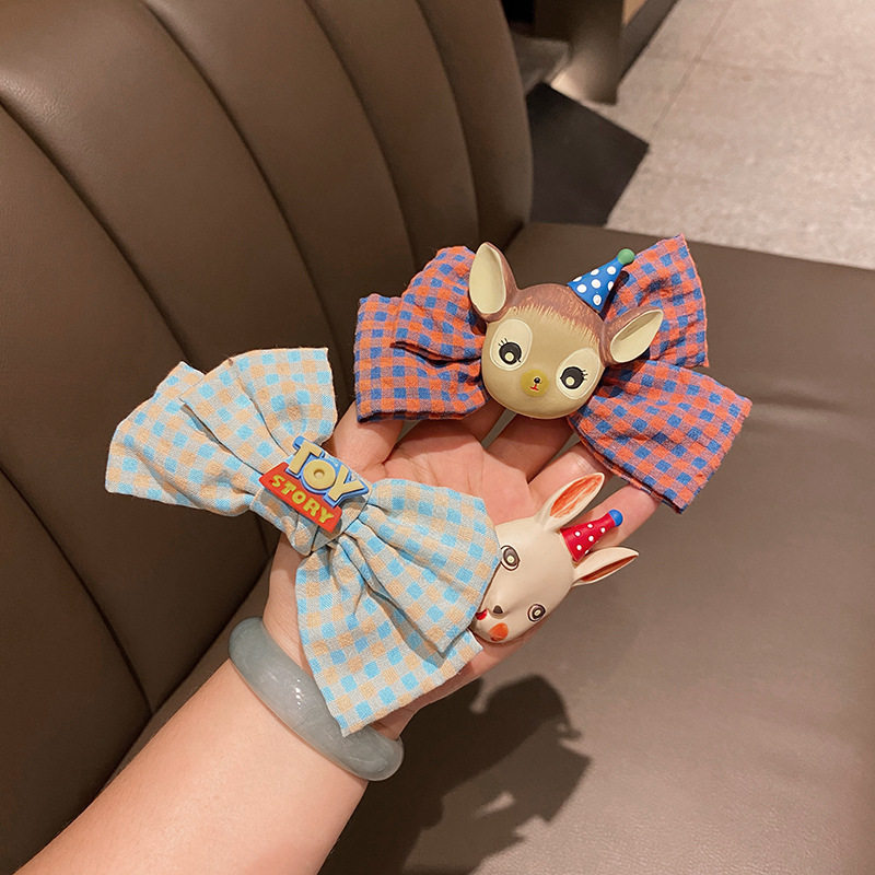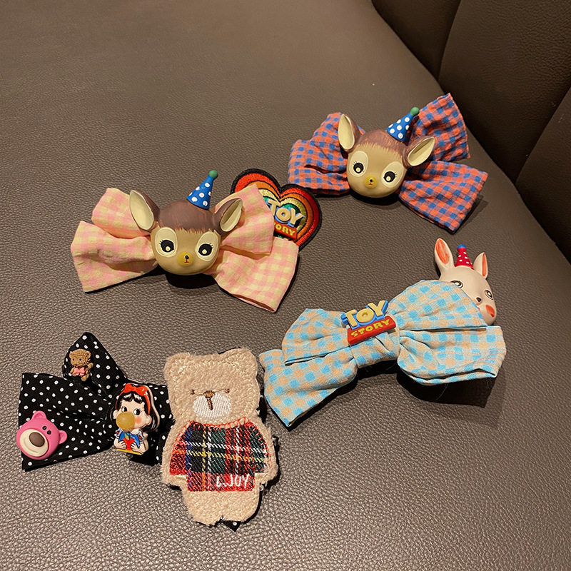 Мультяшная заколка для волос с бантиком, милый хвостик, в корейском стиле, с вышивкой, с медвежатами