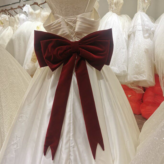 Большое бархатное свадебное платье с бантиком, бордовая ткань, 45 см