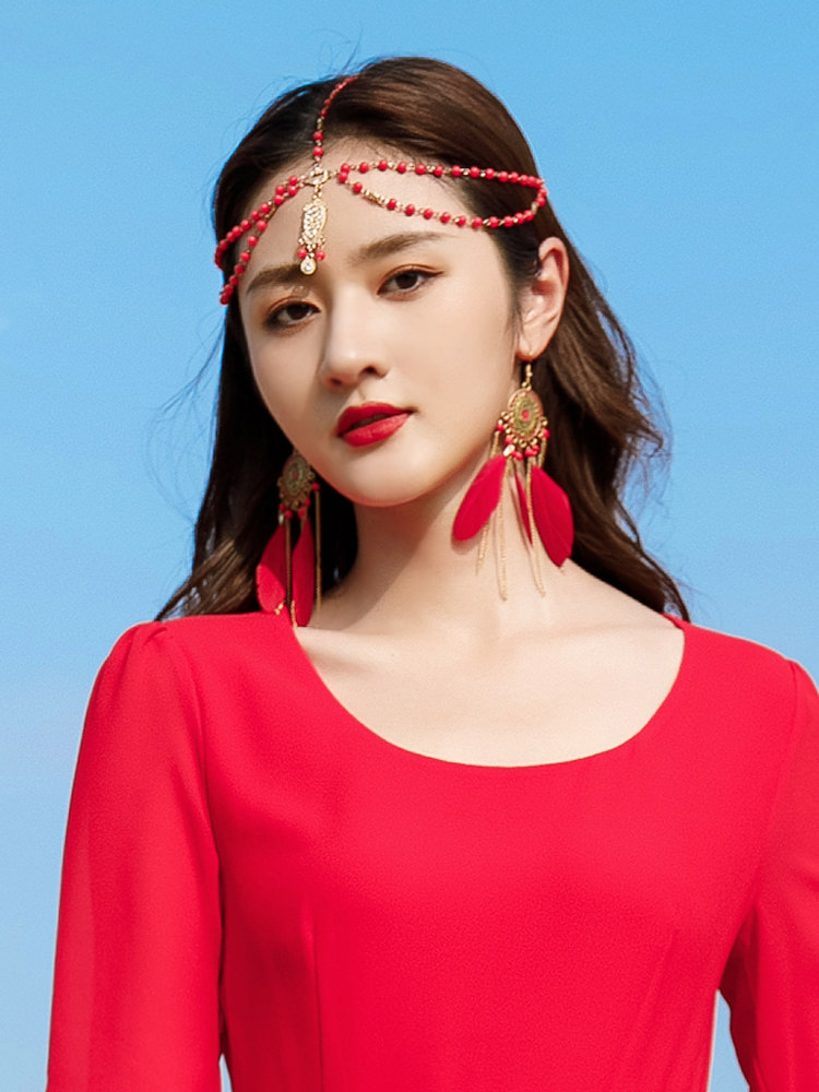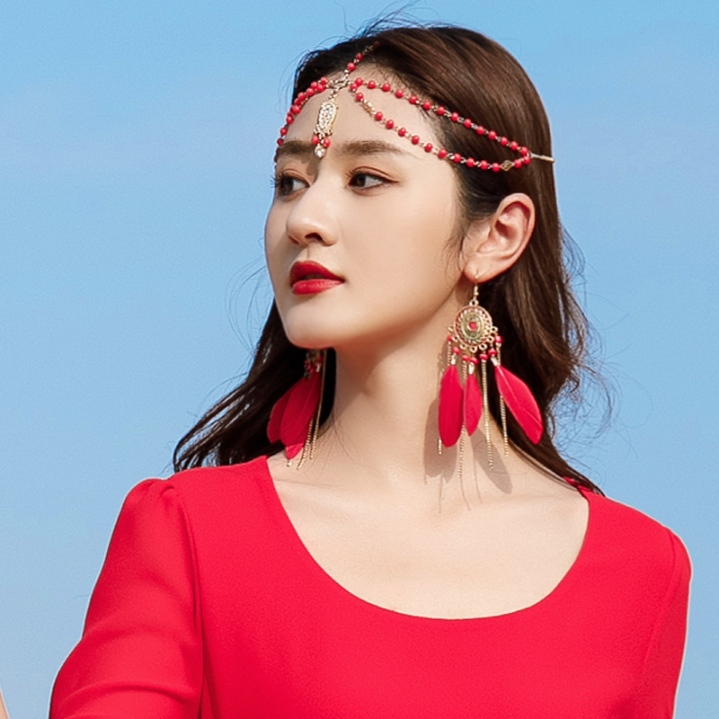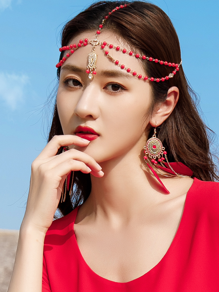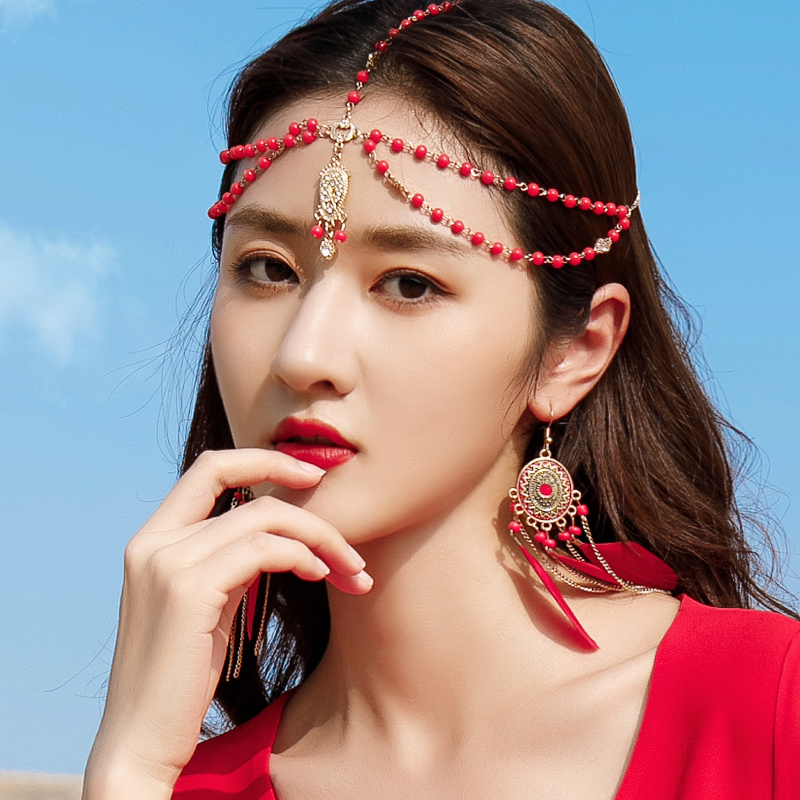 Броки Forerer, фронтальные аксессуары для волос Женская алмазная жемчужная жемчужина, лоб, лоб, сетка красный, фото экзотическая древняя ветряная одежда