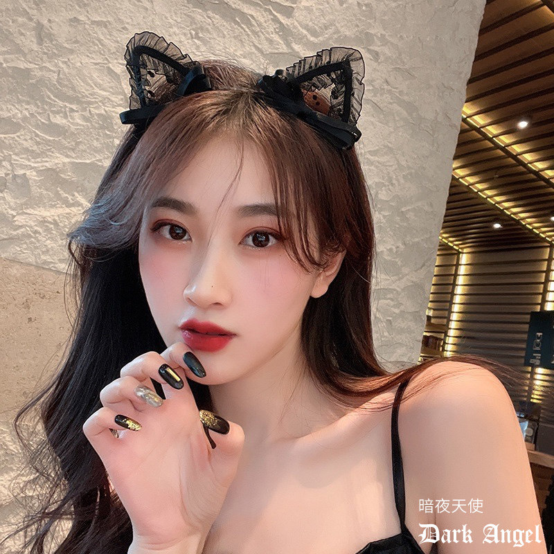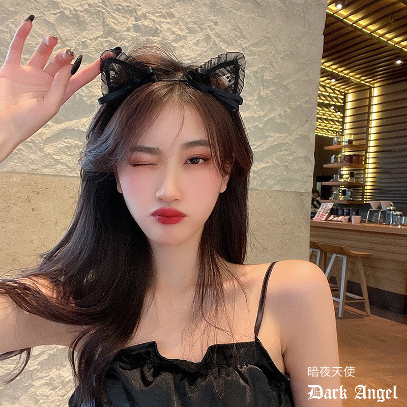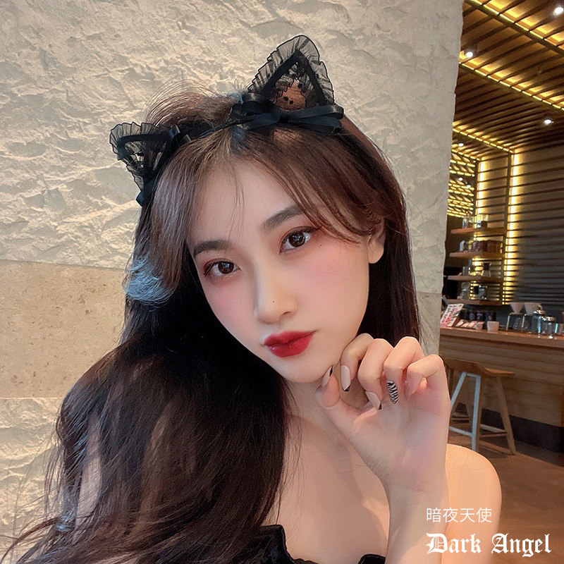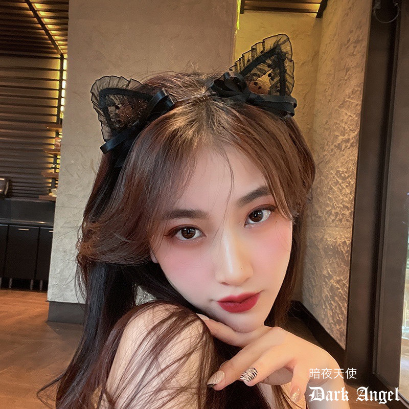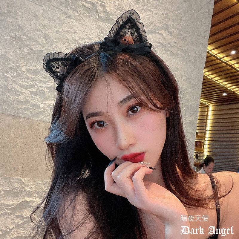 Сексуальный милый черный ободок с бантиком, заколка для волос, аксессуар, цветочный принт, популярно в интернете
