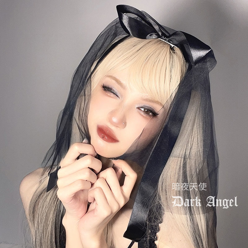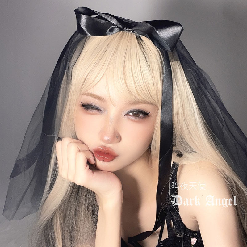 Черный кружевной аксессуар для волос с бантиком, стиль Лолита, xэллоуин, косплей