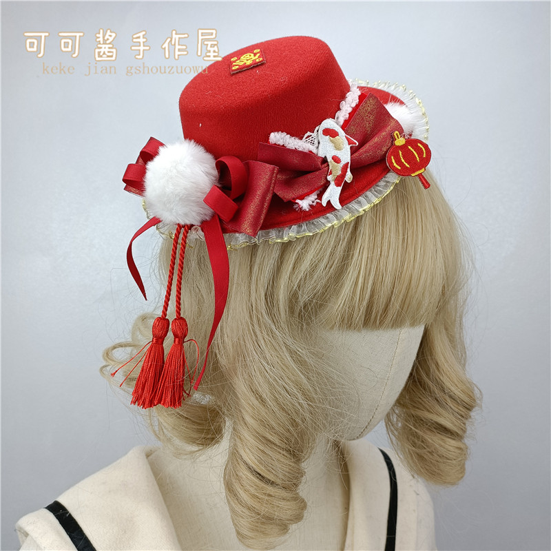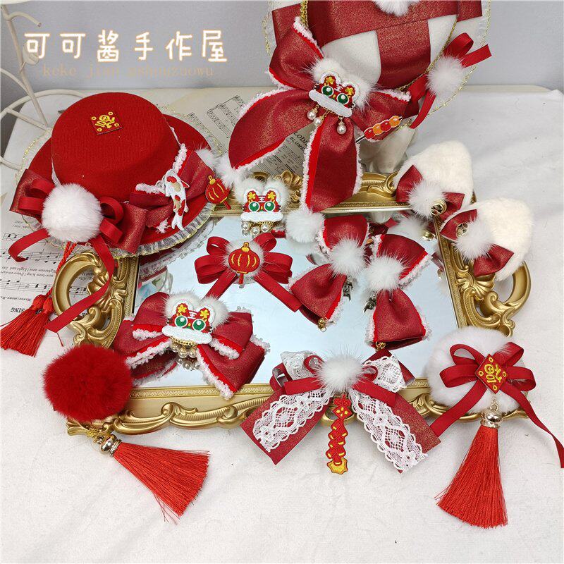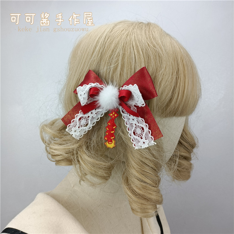 Аксессуар для волос с бантиком, красная детская шапка с кисточками, заколка для волос, стиль Лолита