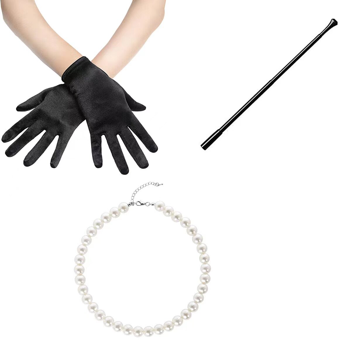Перчатки: высококачественная атласная (не сопандекс, сорта спандекса недостаточно), около 52 см в длину (+-3), над локтем, короткие перчатки около 22 см.