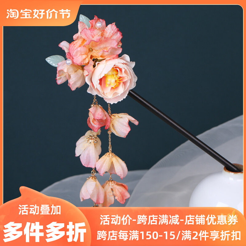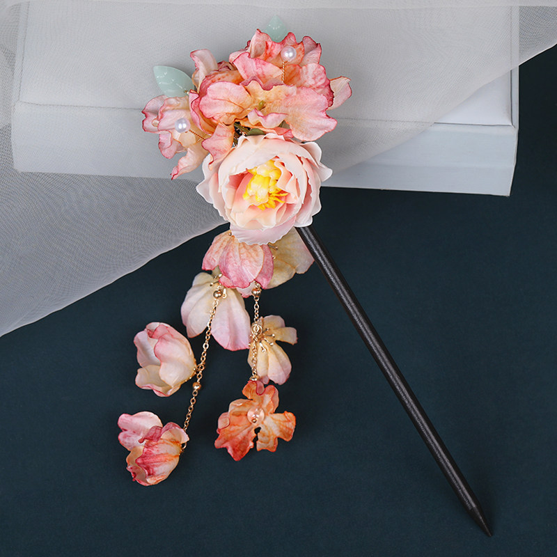 Аксессуар для волос, китайская шпилька, ханьфу с кисточками, в цветочек