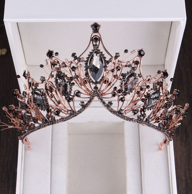 Барокко Черный Кристалл Жемчуг Свадебные Диадемы Корона Горный Хрусталь Театрализованное Диадема Невесты Оголовье Свадебные Аксессуары Для Волос Тиара De Noiva