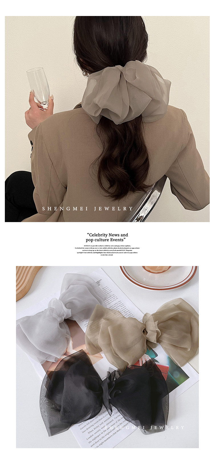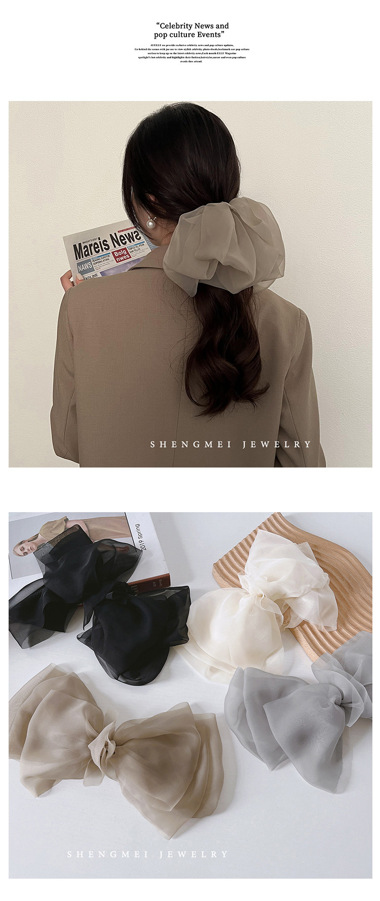 Шифоновая заколка для волос, заколка-крабик, аксессуар для волос с бантиком, популярно в интернете, коллекция 2023