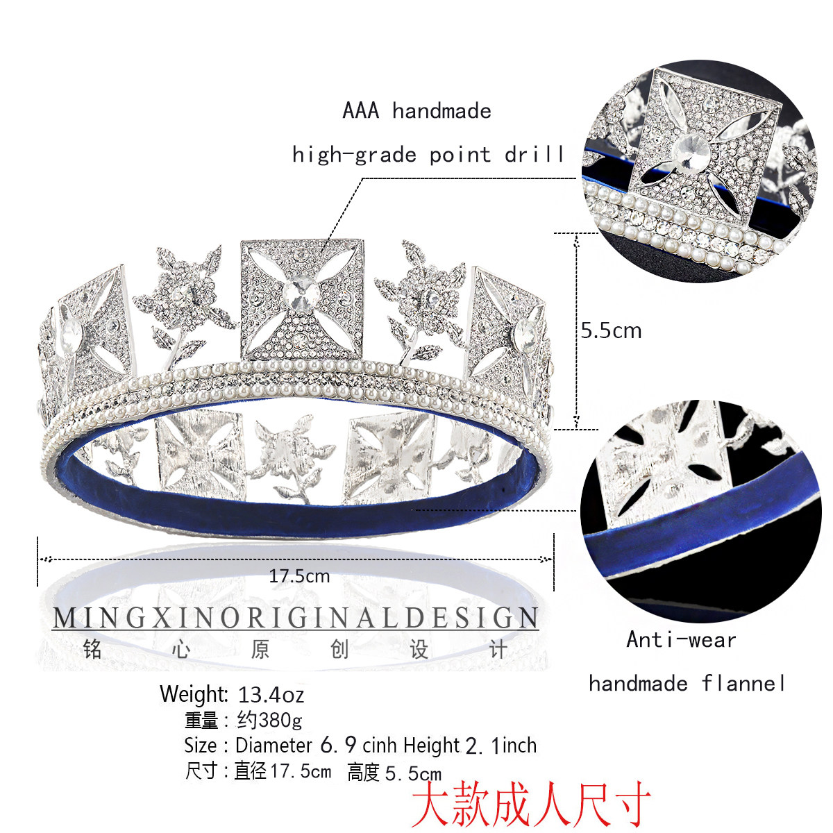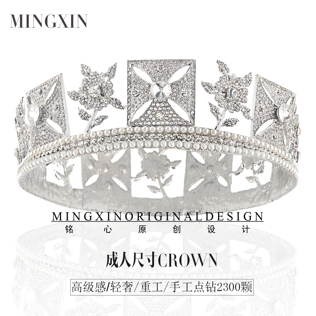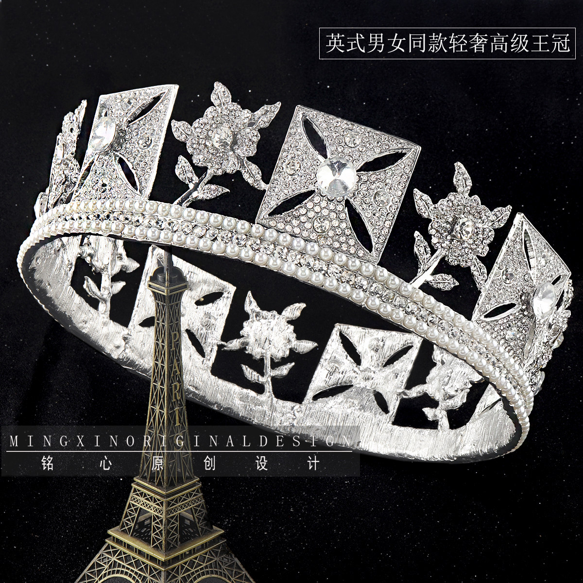 Британская элитная светлая роскошная королевская коронационная большая корона для мужчин и женщин, посеребренная круглая корона ручной работы со вспышкой и бриллиантами для свадьбы жениха и невесты
