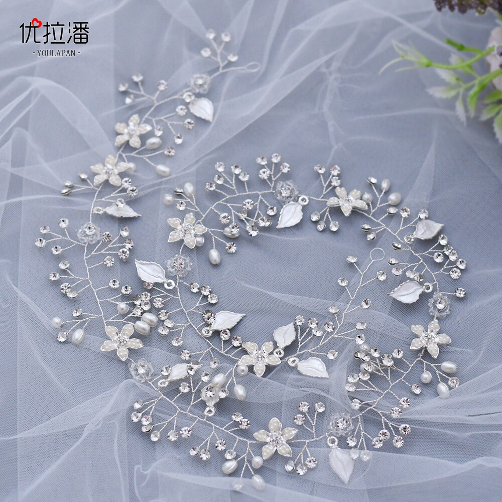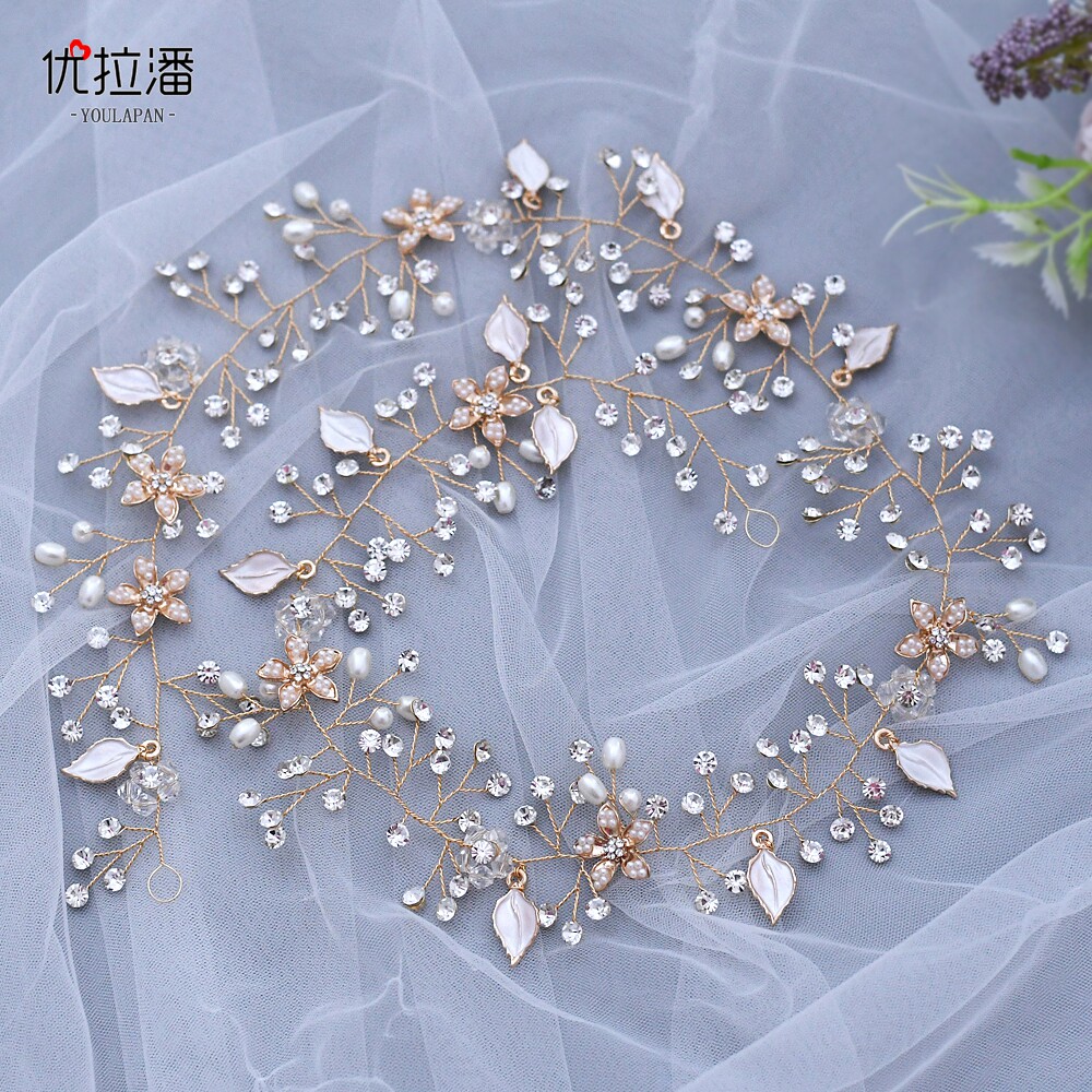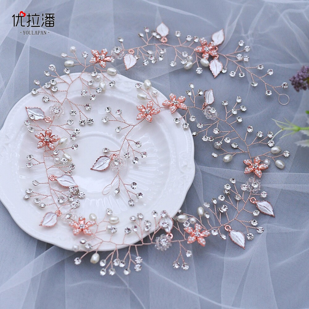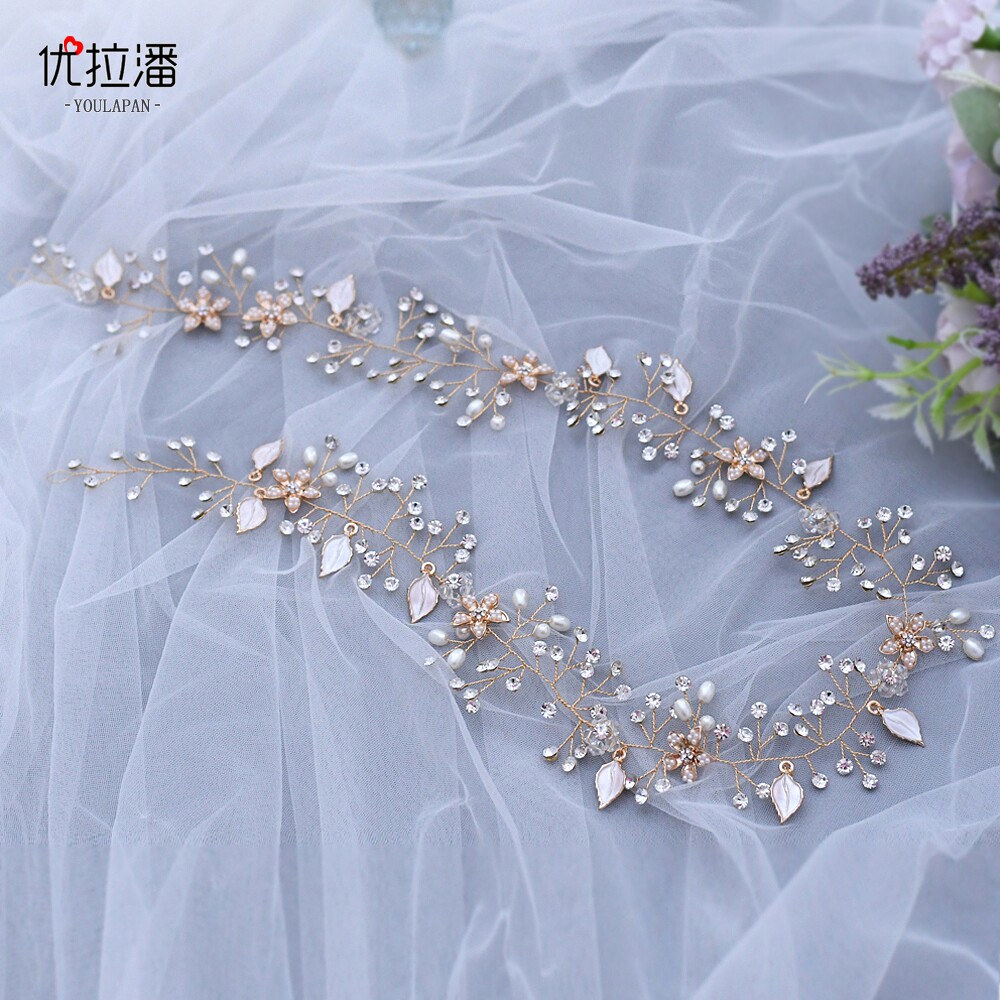 Длинный бриллиантовый свежий аксессуар для волос из жемчуга для невесты, HP268