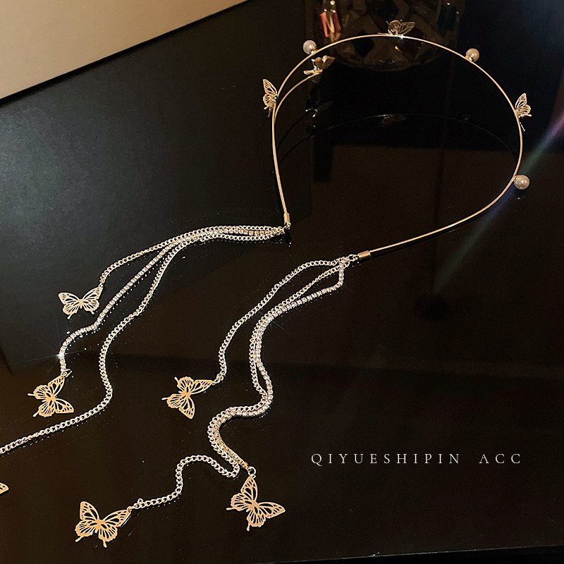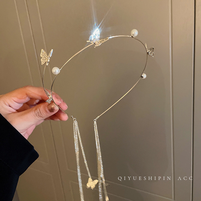 Летний универсальный милый ободок из жемчуга с бабочкой с кисточками для выхода на улицу, шпильки для волос