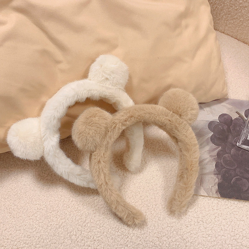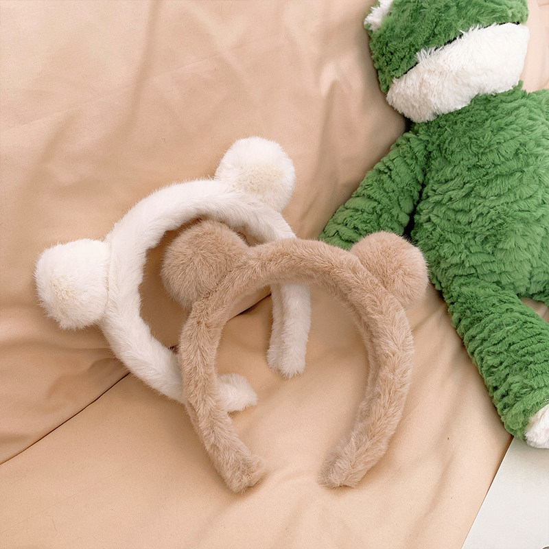 Демисезонный плюшевый ободок, японские милые шпильки для волос для умывания, аксессуар для волос, с медвежатами, популярно в интернете