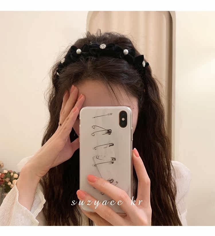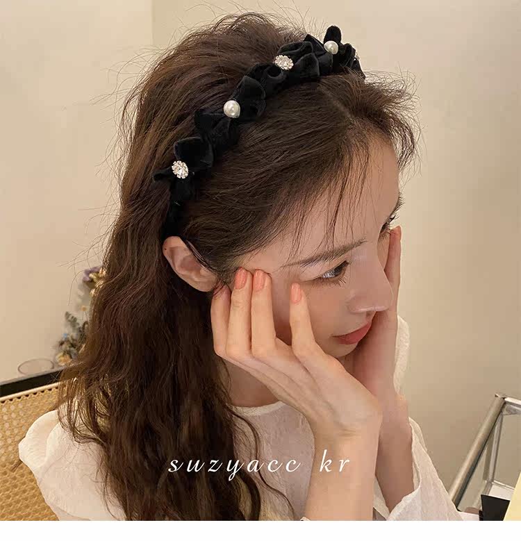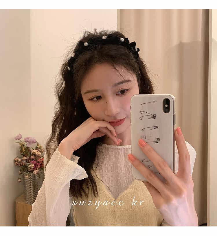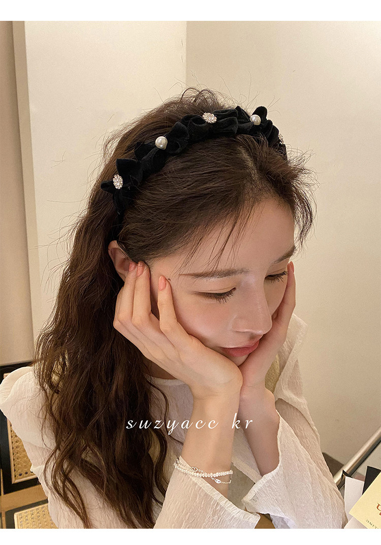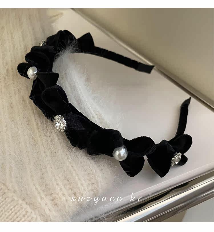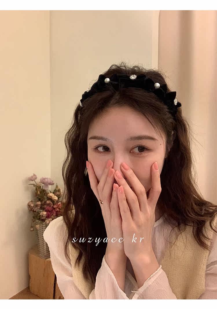Ретро ободок с бантиком из жемчуга для умывания, французский стиль, 2022, популярно в интернете, новая коллекция