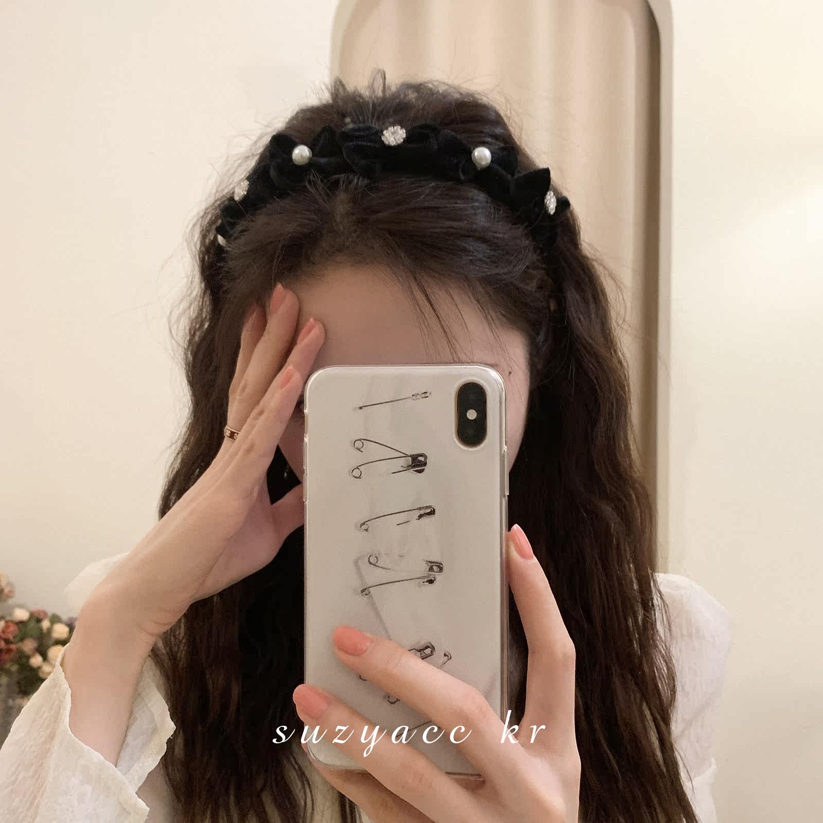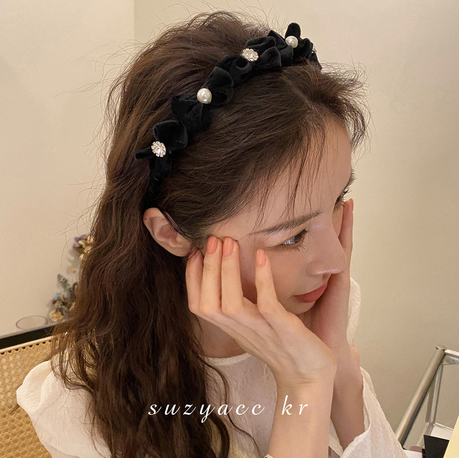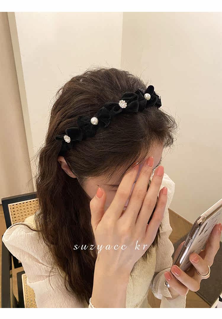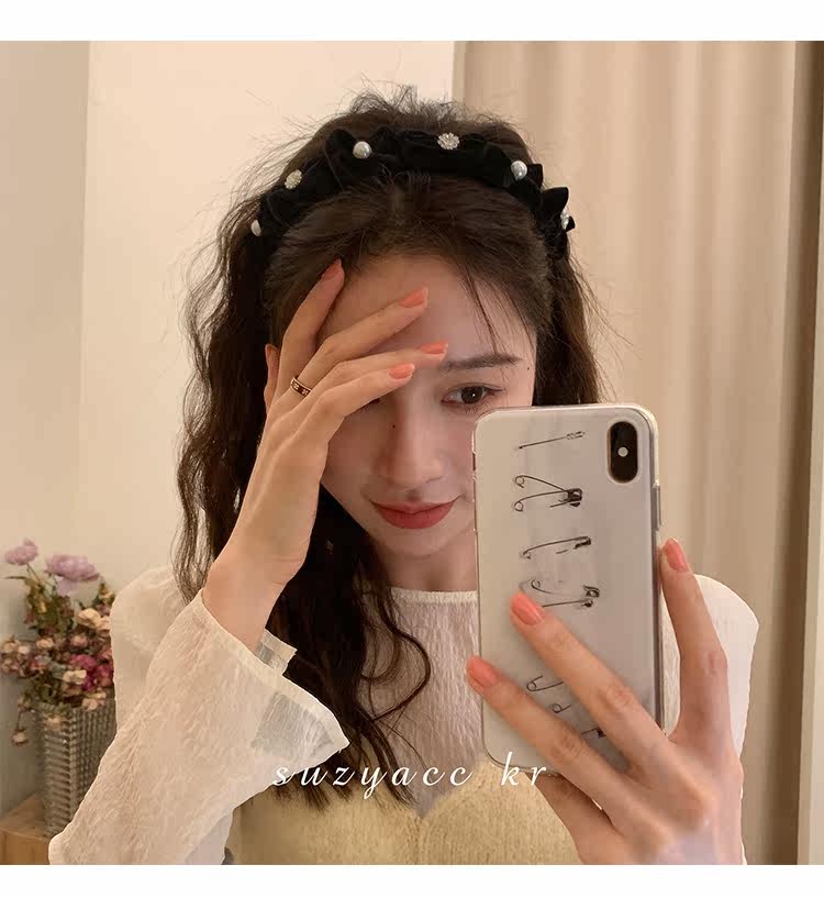Ретро ободок с бантиком из жемчуга для умывания, французский стиль, 2022, популярно в интернете, новая коллекция
