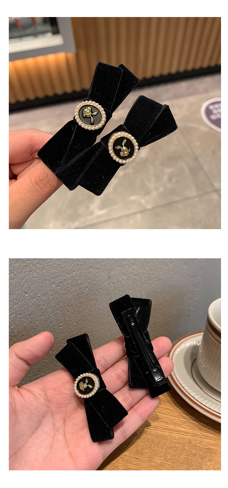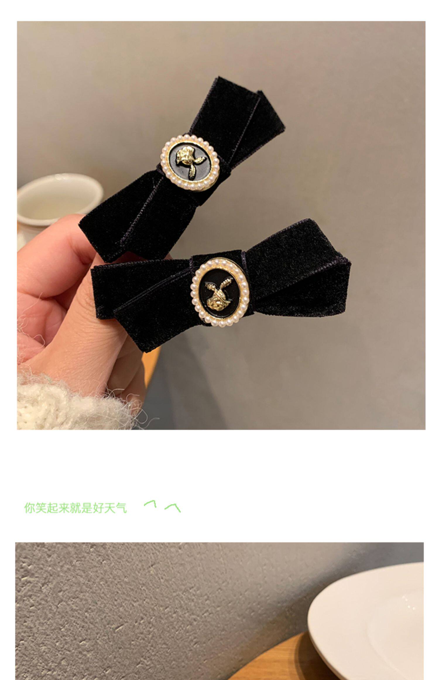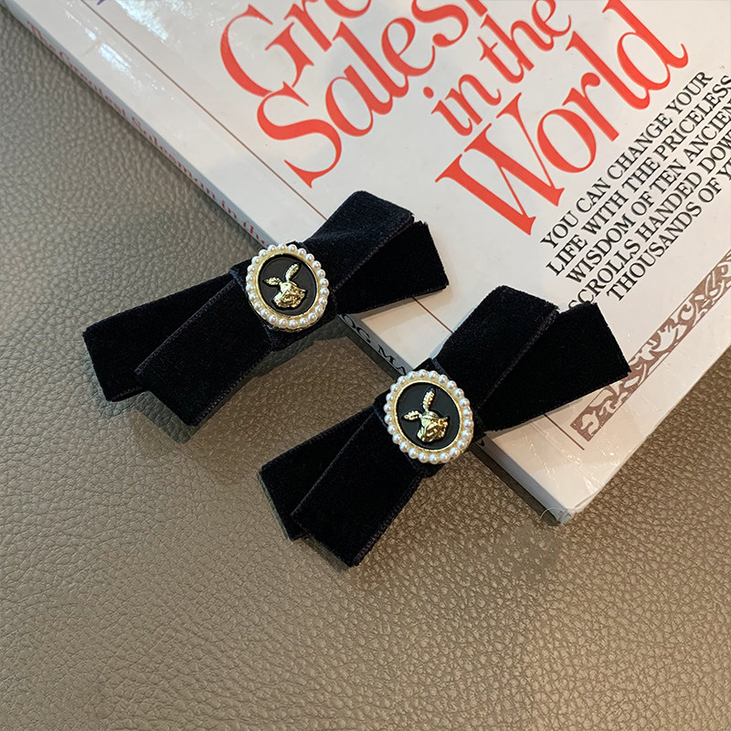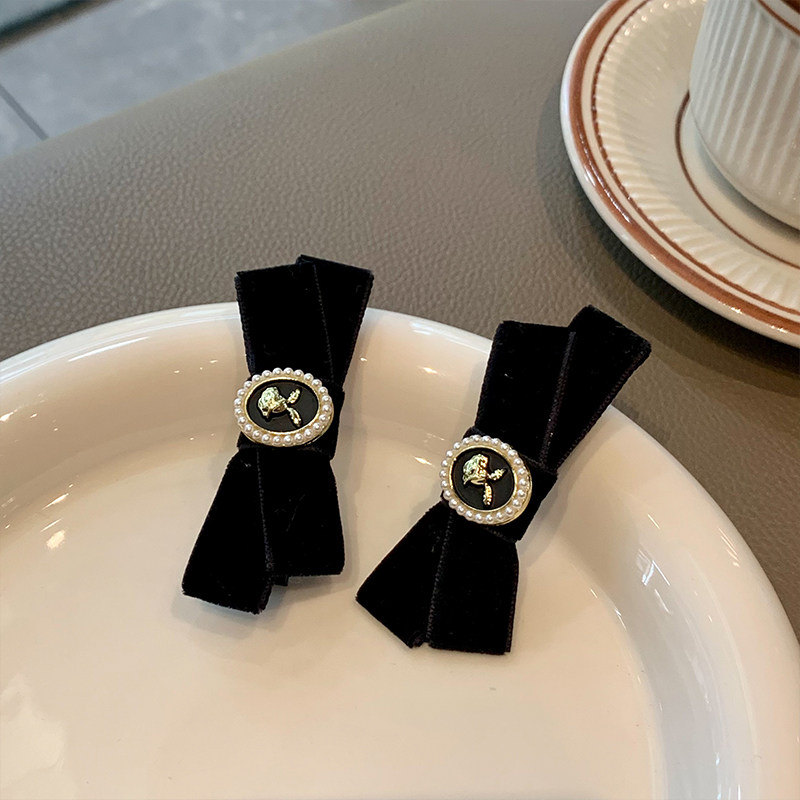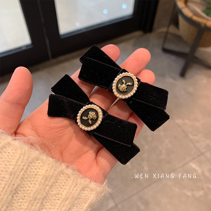 Ретро заколка для волос с бантиком, небольшая черная челка, шпильки для волос, французский стиль, в стиле Шанель