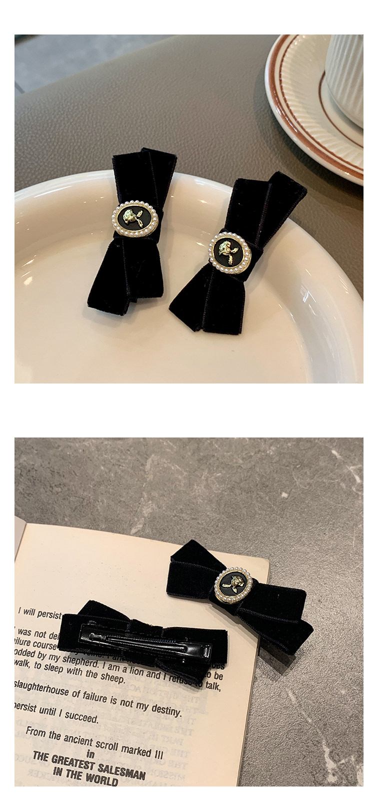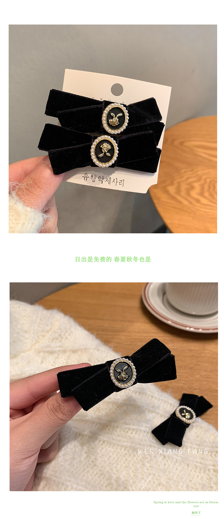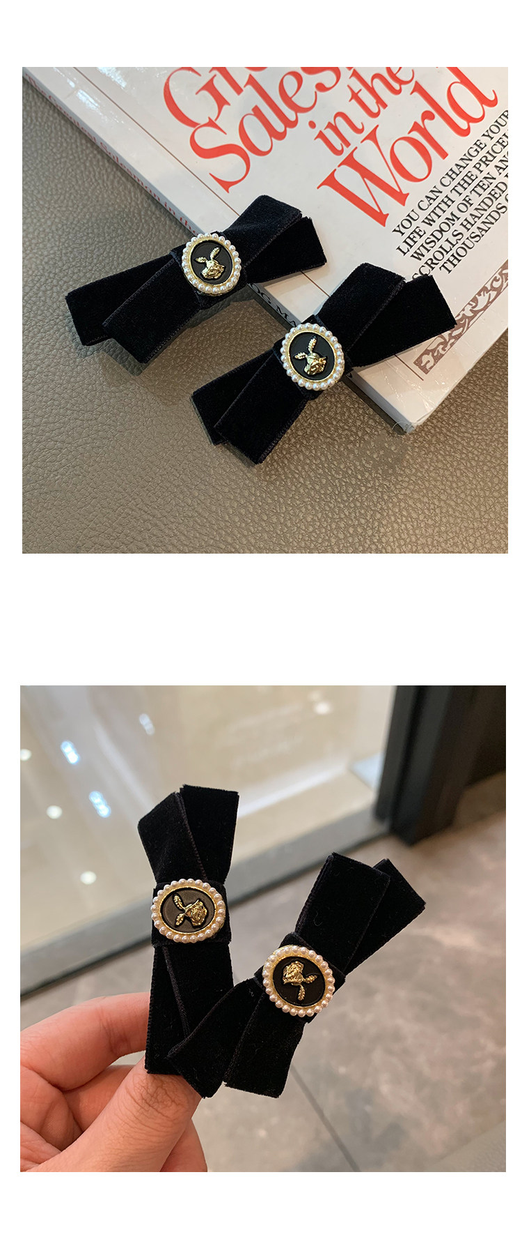 Ретро заколка для волос с бантиком, небольшая черная челка, шпильки для волос, французский стиль, в стиле Шанель