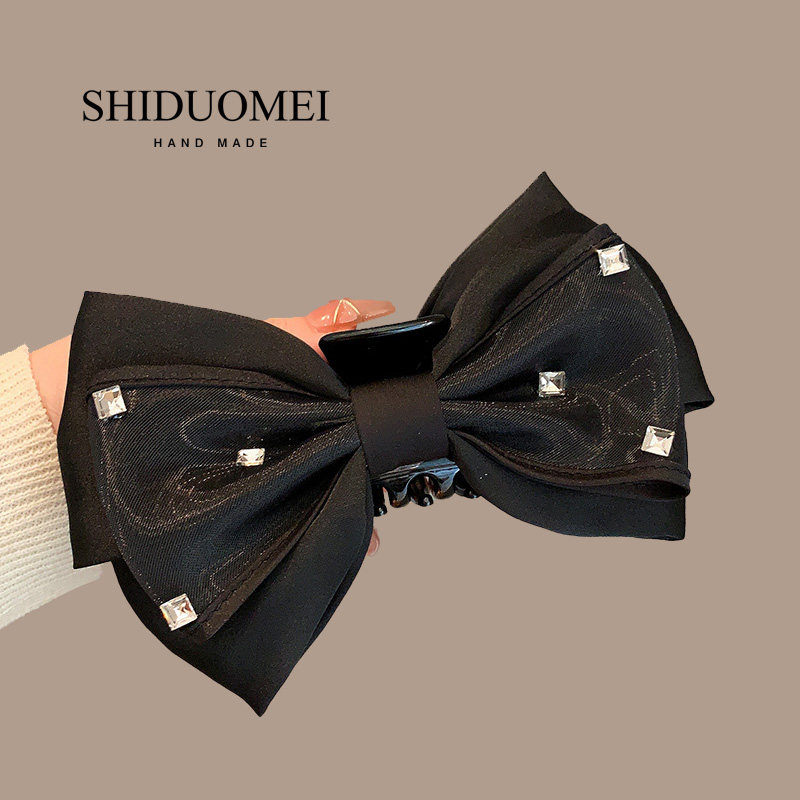 Изысканная черная большая заколка-крабик с бантиком, элитная заколка для волос, акула, шпильки для волос, Южная Корея, изысканный стиль