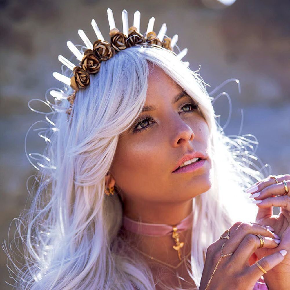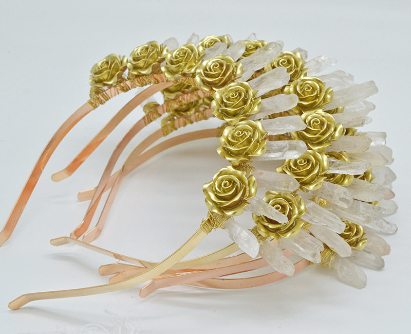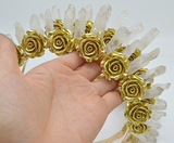 Goden Fower Crystal crwon Золотой цветок натуральный белый кристалл корона повязка на голову девственный головной убор