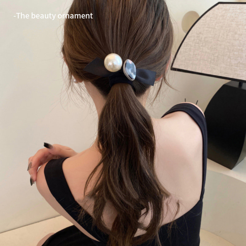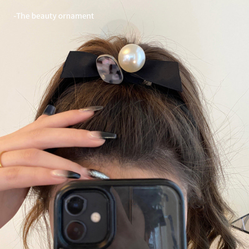 Черная эластичная резинка с бантиком из жемчуга, аксессуар для волос, 2025 года