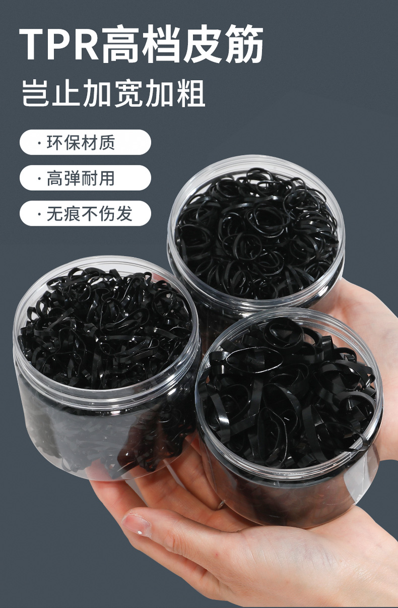 Одноразовые высокие эластичные прочные черные резиновые кольца, резинка для волос, увеличенная толщина