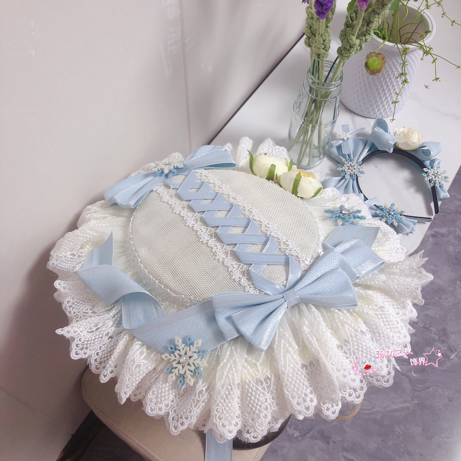 Оригинальная синяя заколка для волос, шапка, DIY, стиль Лолита, со снежинками