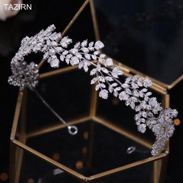 Тазирн кубическая циркония свадьба свадебная волоса полная новая ручка