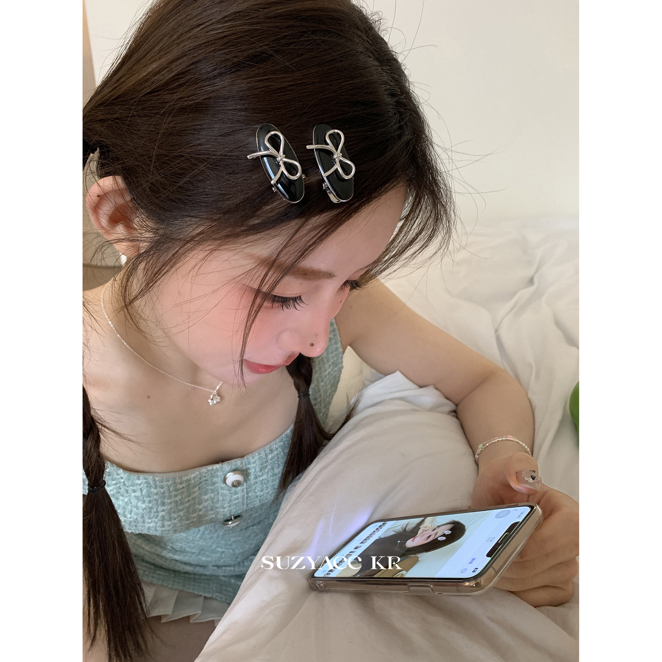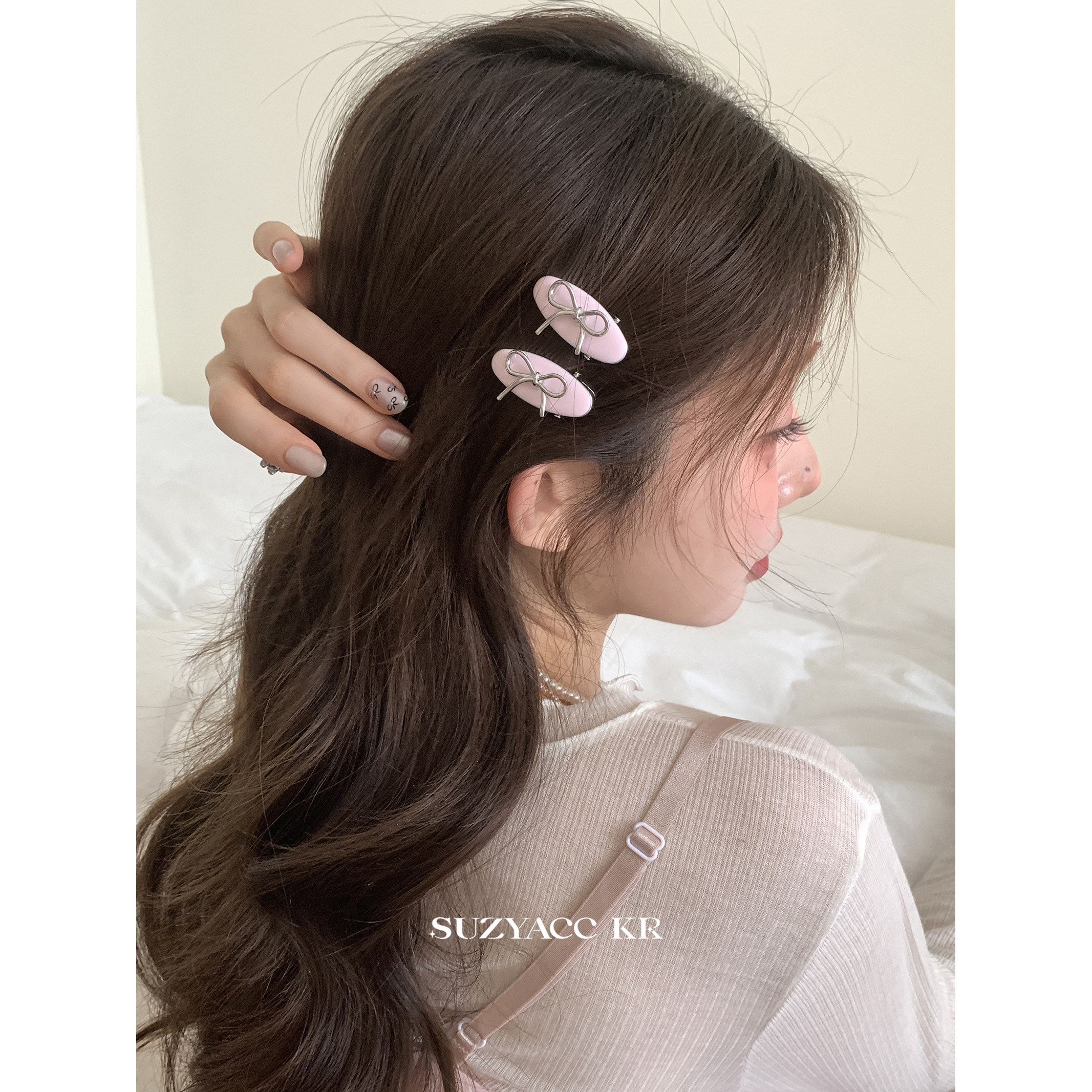 suzyacc kr Небольшая дизайнерская кремовая челка с бантиком