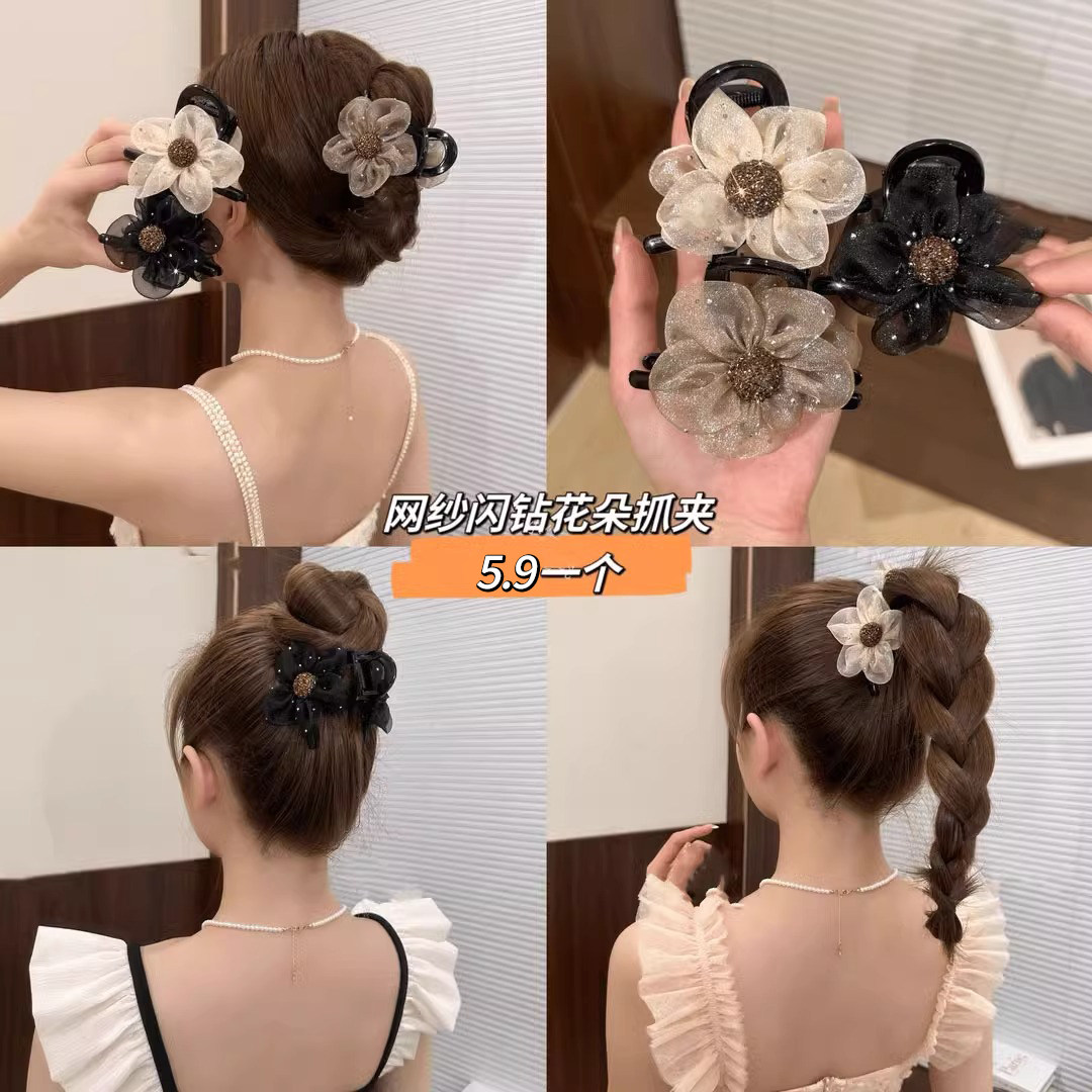 Заколка-крабик, хвостик, заколка для волос, аксессуар для волос, в цветочек, премиум класс