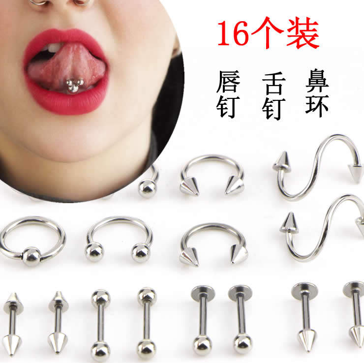 Смешанный комплект из нержавеющей стали, пирсинг для языка, пирсинг для губы, серьги, ювелирное украшение, 16 шт, европейский стиль