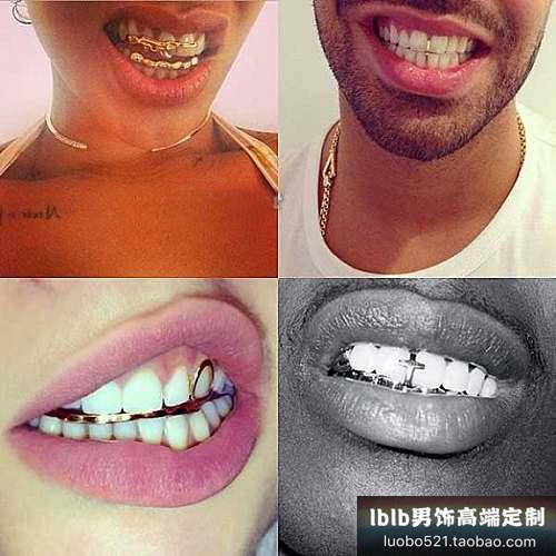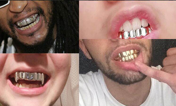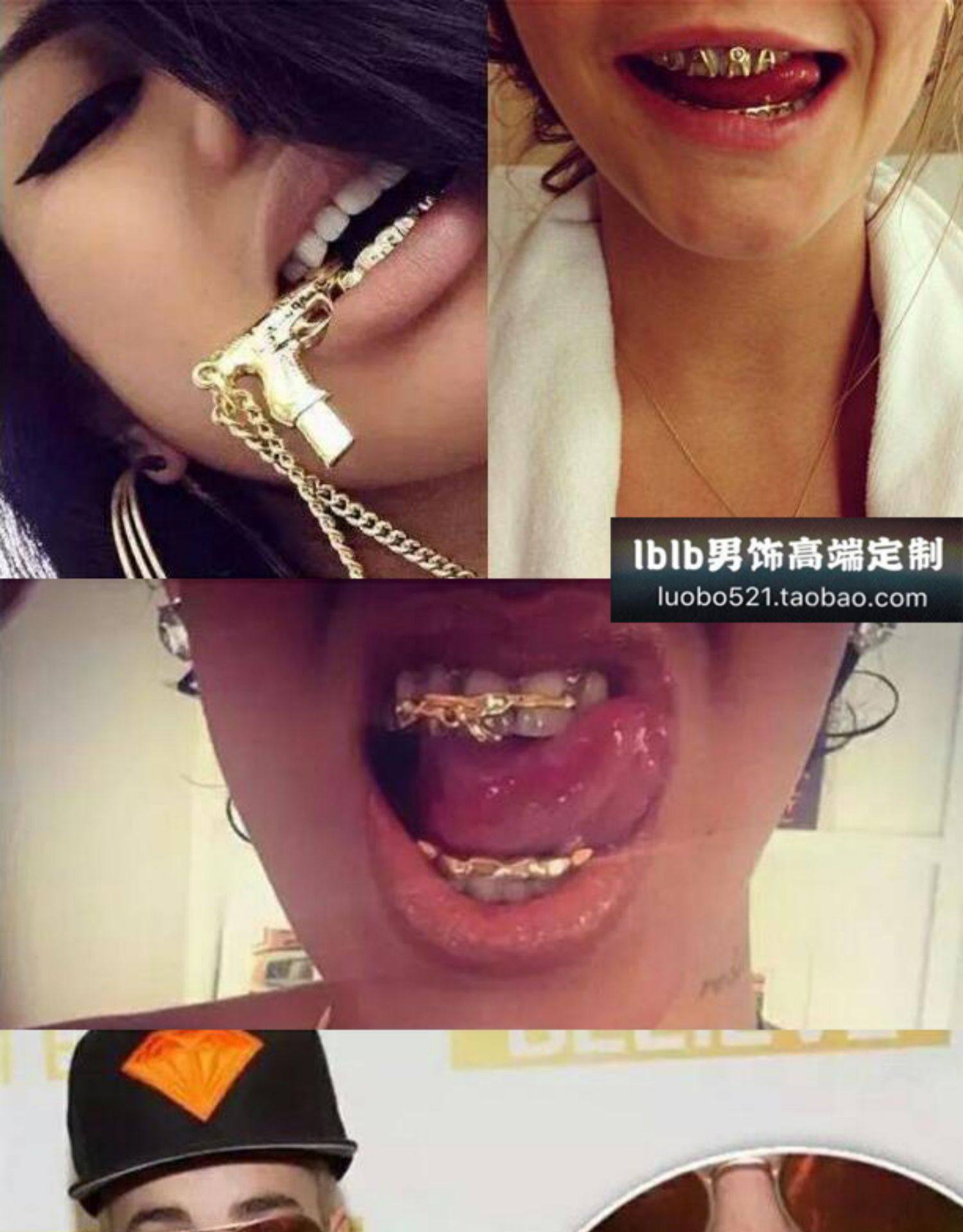 Hiphop Hip -Hop Gun Black Clown Joker Joker той же модель рэп -зубы Grillz Gold, брекеты, большие золотые зубы