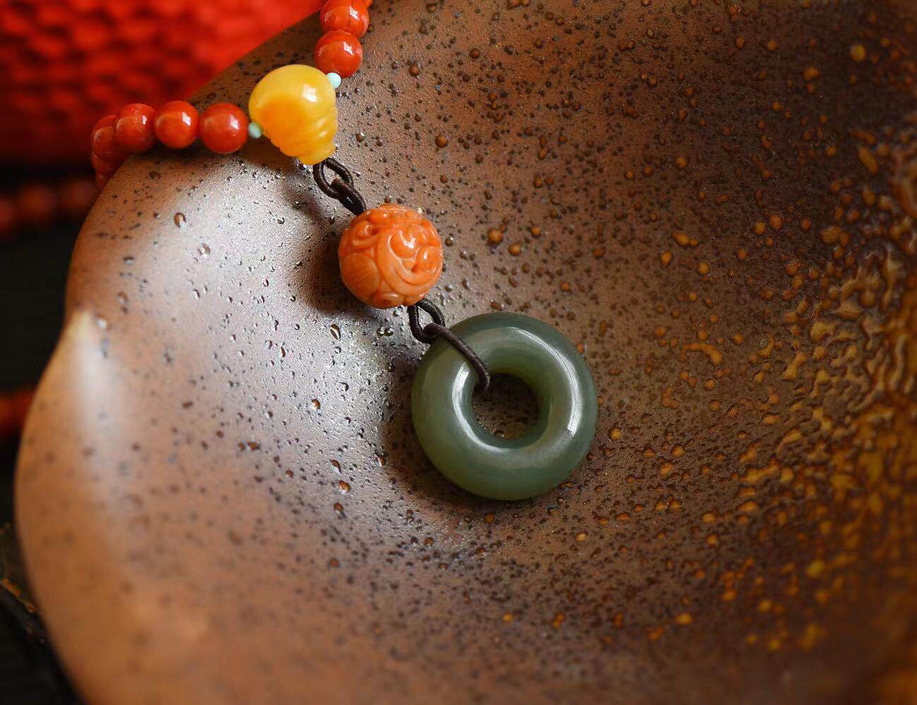 Красные бусины из воскового агата