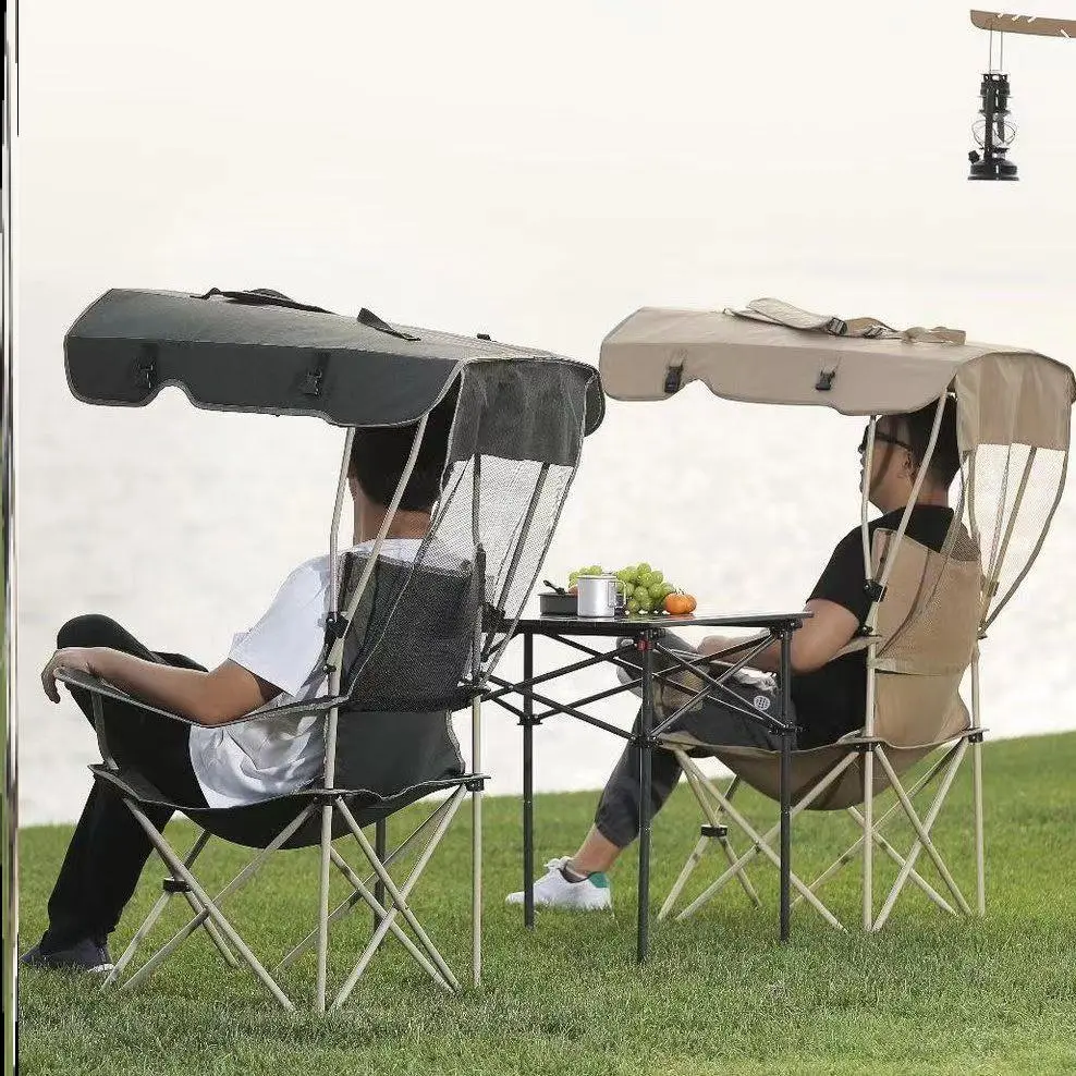 Рыбацкий складной стул с зонтиком на открытом воздухе солнце
