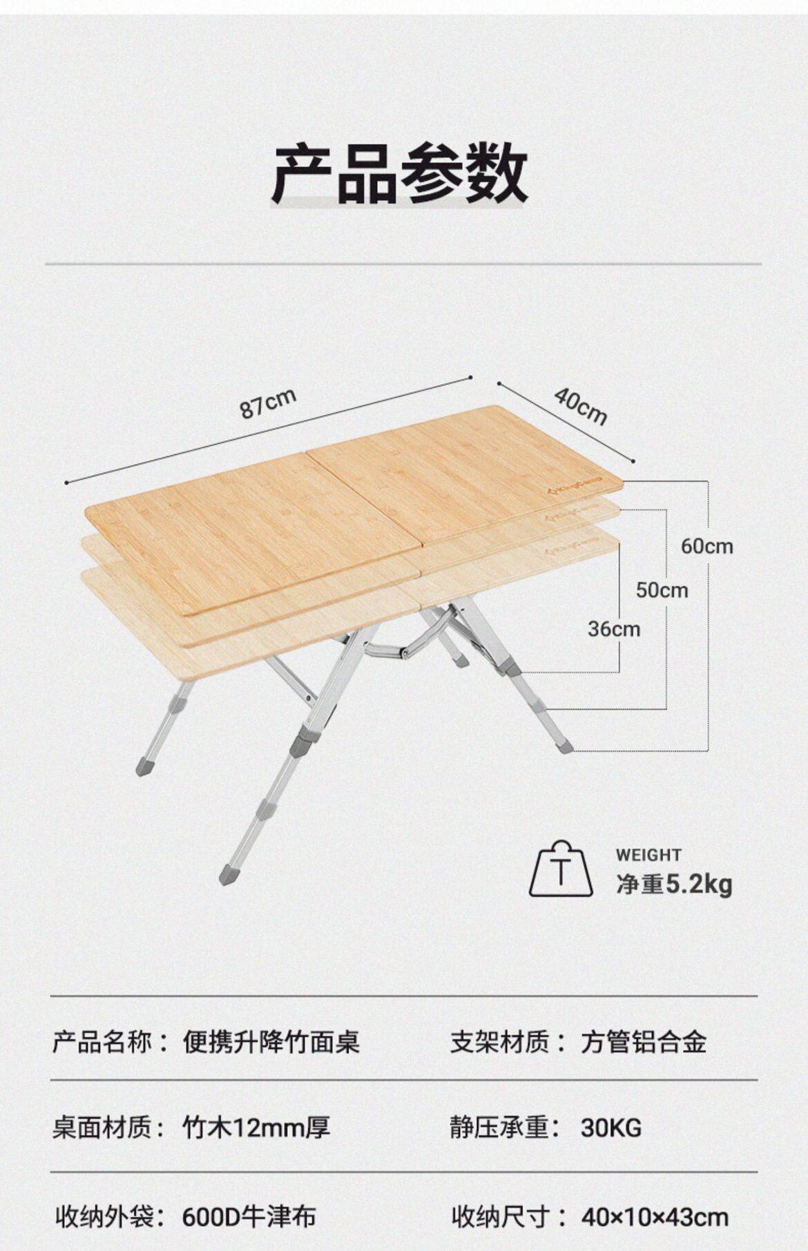 KingCamp складной уличный стол, складной бамбуковый стол, автомобильный портативный стол, подъемный стол для кемпинга и пикника
