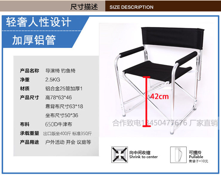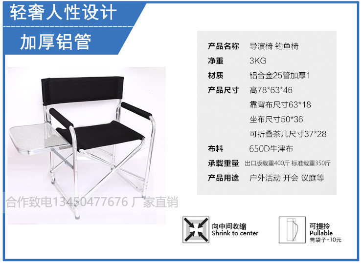 Открытый складной стул директор председатель алюминиевый сплав Портативный рыбалка и отдых пляжного кемпинга Актер Директор Эскиз Стул