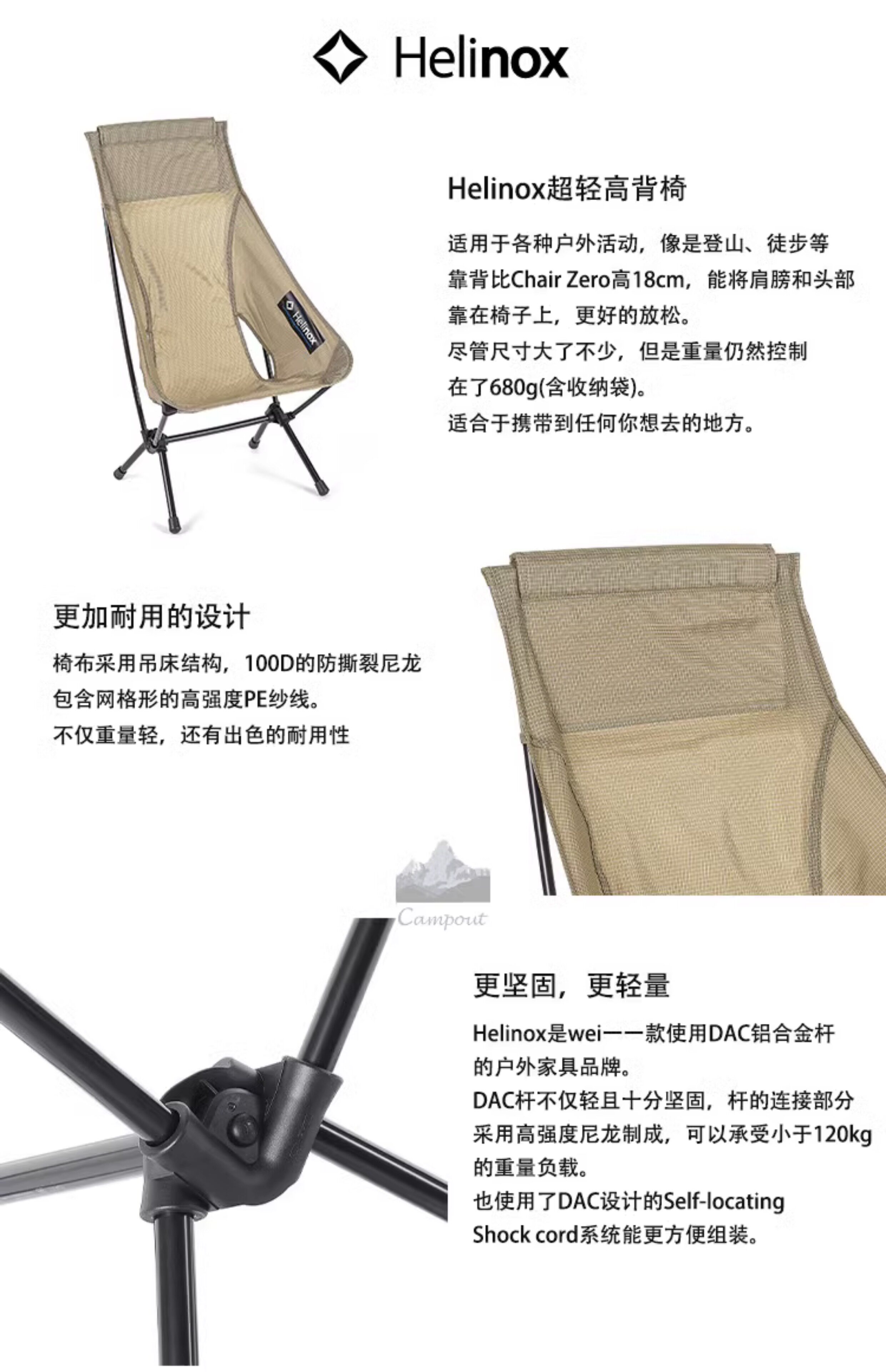 Helinox Стул нулевой высокий спинку Hilliros Ultra-Light Back Moon Стул на открытом воздухе складной стул