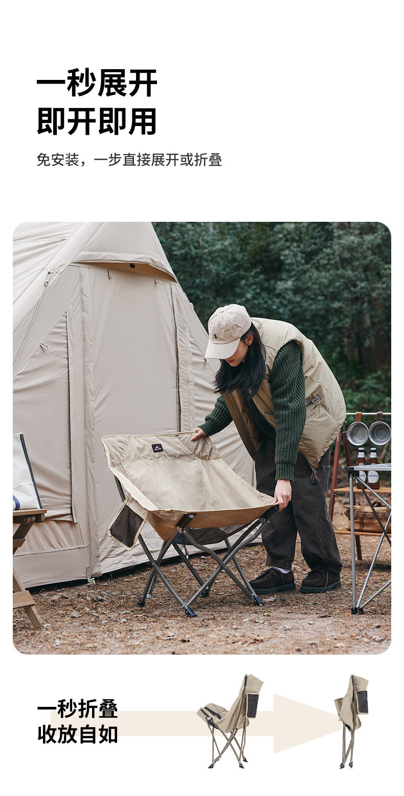 Naturehike Noke портативный складной стул для кемпинга, уличный стул для пикника, стул для рыбалки, лунный стул, спинка стула