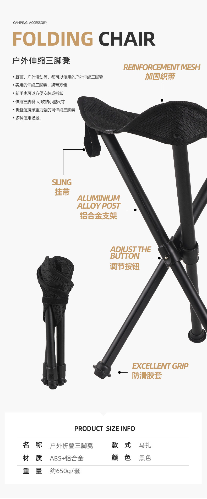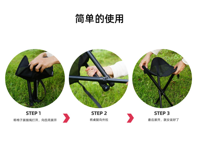 NOBANA Открытая телескопическая складка с тремя выброшенными тал -оллетными алюминиевыми сплавами Портативный маза -стула для лагеря Три -стул Три -стул