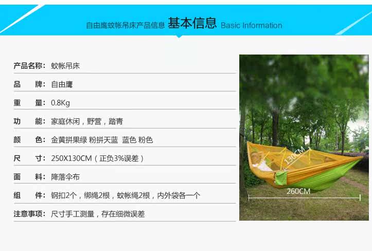 | Спецификация (длина*ширина): 260*130 (см) | Комарская сеть подвеска: порошок  синий  |