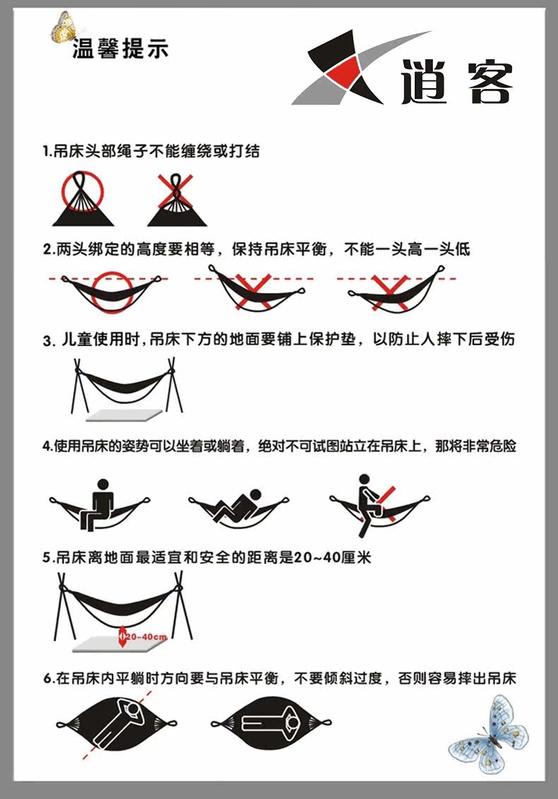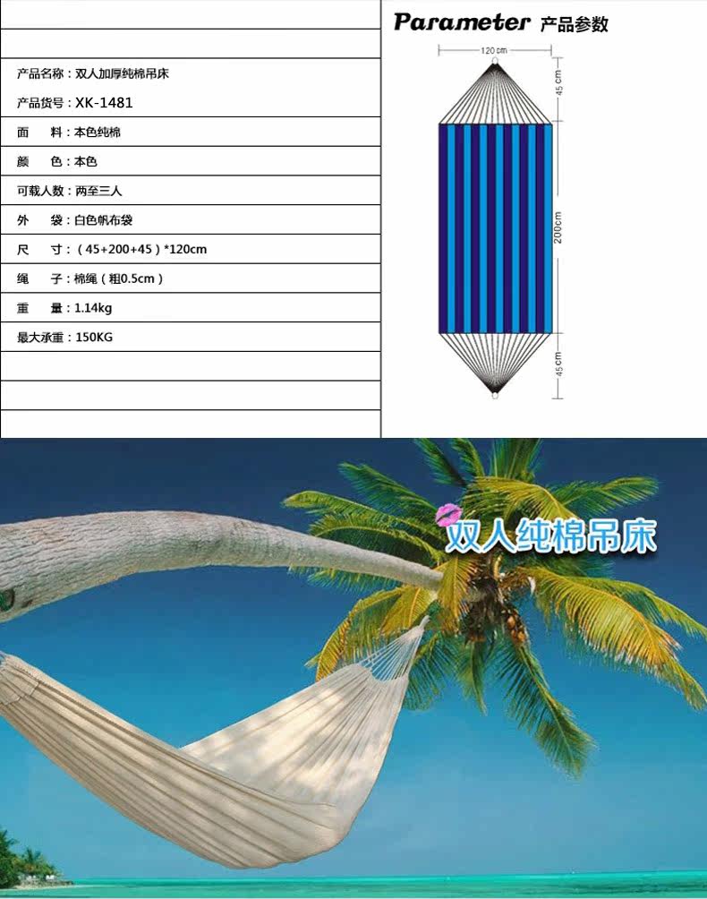 逍客 Дорожные портативные хлопковые белые качели для двоих для отдыха